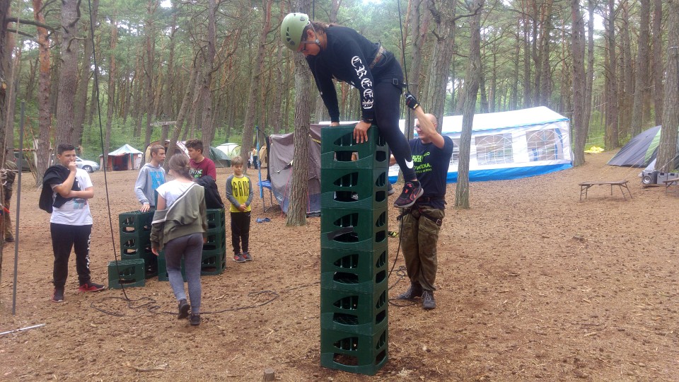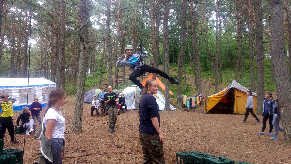 A dobra kondycja była potrzebna do tego, żeby wspinać się po parku linowym, który na środku i wokół obozu zbudowała zaprzyjaźniona ekipa z Poznania. Były zjazdy na linach (żeby zjechać, trzeba było wspiąć się po skrzyniach), mosty wiszące itp. Młodsi mieli okazję wziąć udział w zajęciach plastyczno-technicznych, prowadzonych przez plastyka, Beatę Cichecką. Ich prace były potem ozdobą wspólnej świetlicy.