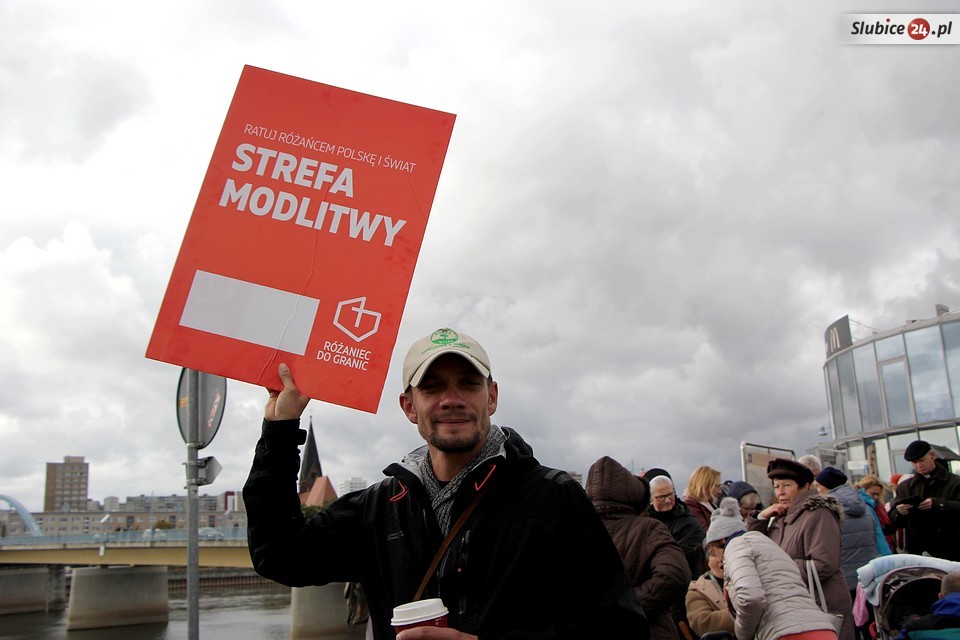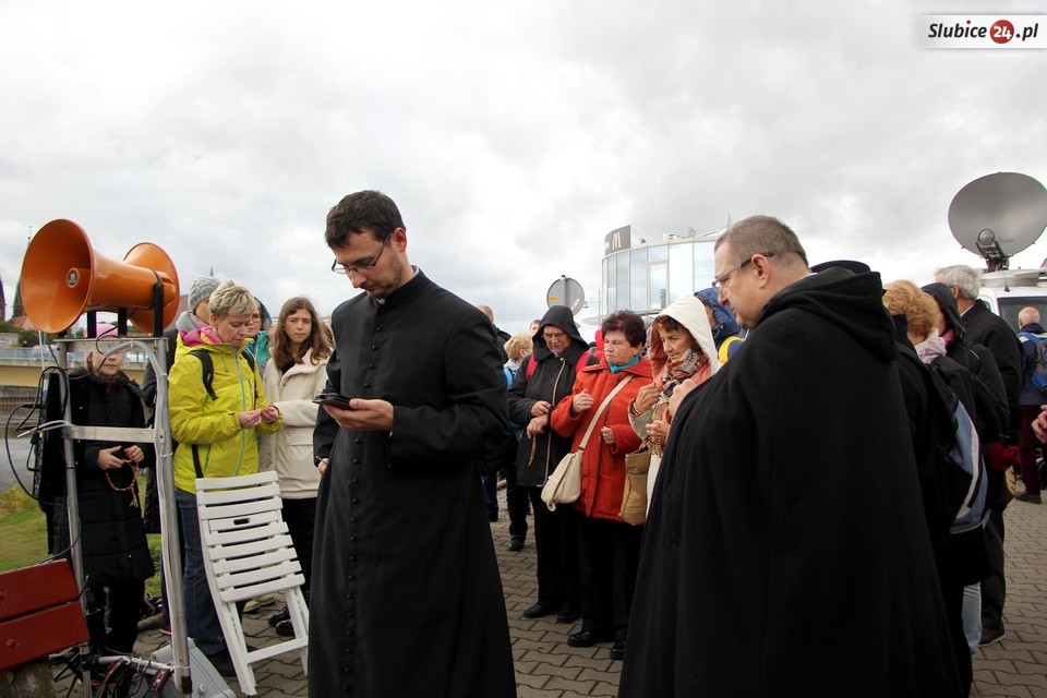 Różaniec rozpoczął się o godz. 14.00. Pielgrzymi odmawiali go w skupieniu, zwróceni w stronę granicy, twarzami do Niemiec. Bardzo duży był przekrój wiekowy osób obecnych na modlitwie, oprócz osób starszych byli również i młodsi. Jak podkreślali na każdym kroku, modlili się za Polskę i świat. Całość przebiegała wyjątkowo spokojnie, bez żadnych ekscesów. Najbardziej zdziwieni całą sytuacją byli goście z Niemiec, którzy jak w każdą sobotę tłumnie przyjechali do Słubic na zakupy.