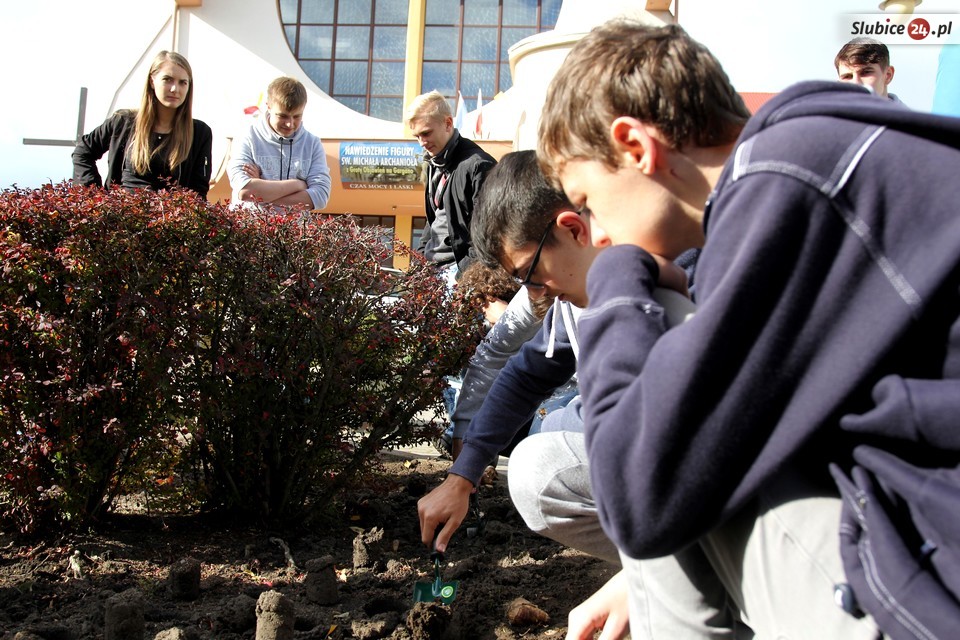 Wszystko odbyło się oczywiście w porozumieniu z proboszczami obu parafii – ks. Tomaszem Partyką oraz ks. Henrykiem Wojnarem. Ten ostatni był obecny podczas sadzenia żonkili, które wcześniej osobiście poświęcił. On i młodzi wolontariusze pracy mieli niemało, bo do wsadzenia w ziemię przygotowano aż 1000 sztuk cebulek. Wcześniej miejsce pod kwiaty skrupulatnie przygotowali uczniowie z Gimnazjum nr 1 pod kierunkiem Bogdana Zduńczyka.