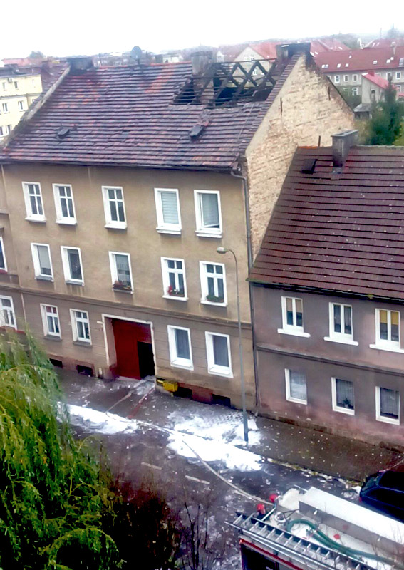 Uszkodzeniu uległa m.in. spora część dachu. Nikt nie został poszkodowany, ale mieszkańcy zostali ewakuowani. Nie wiadomo kiedy będą mogli wrócić do swoich mieszkań. Na chwilę obecną nie znane są też dokładne przyczyny pożaru.