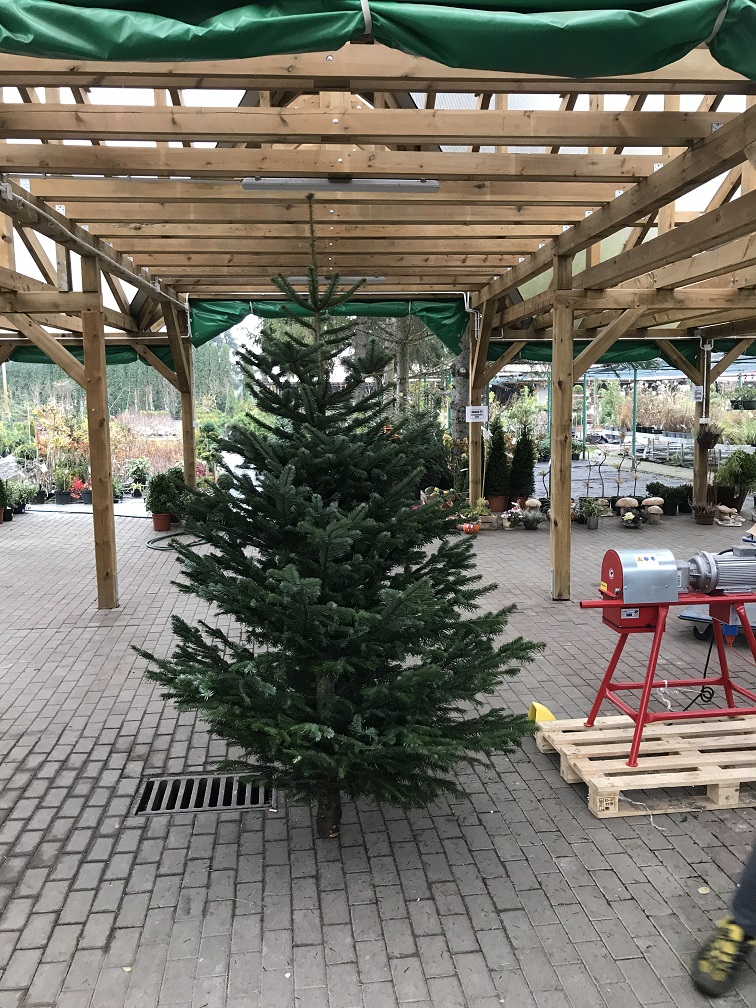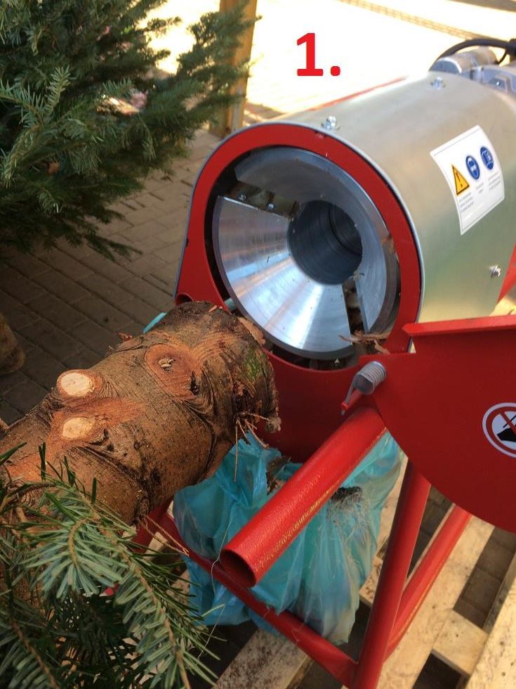 Tylko w Centrum Ogrodniczym Agrogobex każdy klient, który zakupi choinkę ciętą otrzyma darmową usługę frezowania pnia choinki profesjonalną frezarką (patrz foto poniżej).