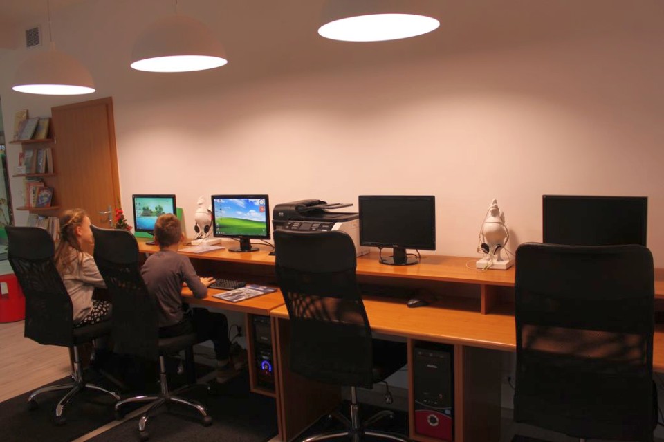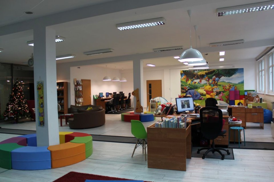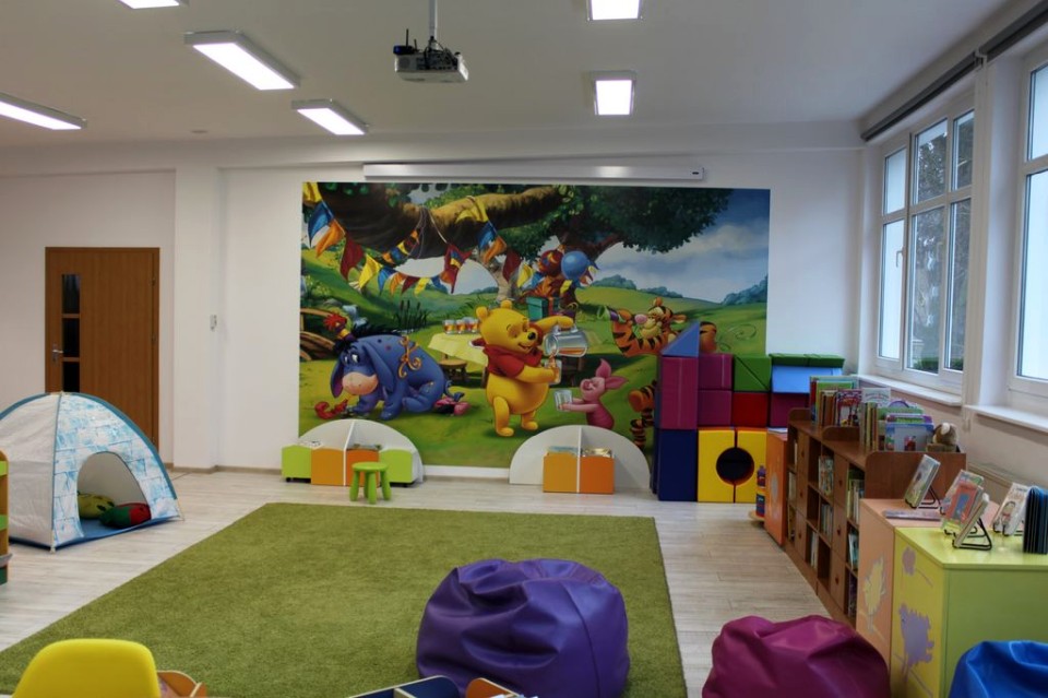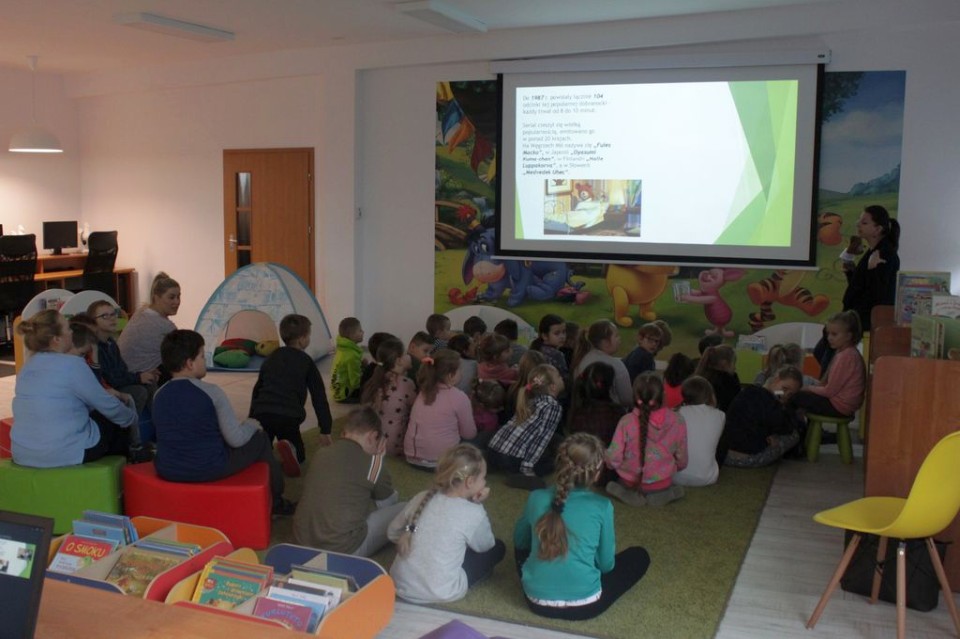 Już od dłuższego czasu brakowało miejsca na różne działania kulturalno-edukacyjne, jakie najmłodszym proponują panie bibliotekarki. Teraz jest go więcej: oddział powiększył się o powierzchnię byłego magazynu na książki. I wydzielono w nim dodatkowe strefy: komputerową (z 4 stanowiskami), dla najmłodszych czytelników z literaturą dziecięcą oraz miejsce do oglądania bajek lub prezentacji. Nowymi elementami wyposażenia są ekran, rzutnik i laptop. A na ścianie pojawiła się kolorowa fototapeta z lubianym przez dzieci Kubusiem Puchatkiem.