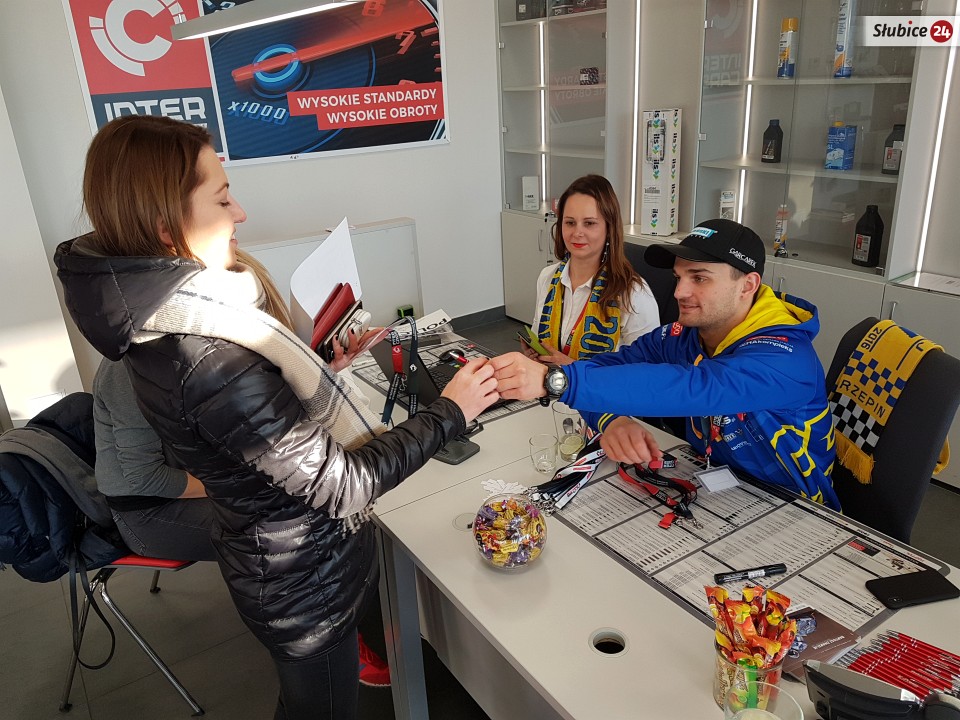 5 lutego na klientów Inter Cars w Słubicach czekał właśnie Bartek Zmarzlik. O przedsięwzięciu informowaliśmy z wyprzedzeniem (nie zdradzając oczywiście nazwiska), ale wielu uważnych czytelników domyśliło się o kogo chodzi. Nie byli więc zaskoczeni obecnością sportowca za sklepową ladą. Jednak niektórzy, jak pan Tomek, o tym nie wiedzieli.