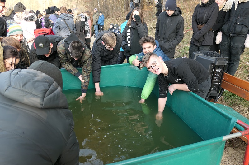 Na młodzież czekała jeszcze jedna niespodzianka – każdy mógł sam przekonać się, jak organizm reaguje na nagłe obniżenie temperatury. Strażacy napełniali przenośny basen wodą z lodem o temp. ok. 1 st. C. Chętni mogli na kilka chwil zanurzyć w niej ręce – niemal od razu czuli, jak spada sprawność dłoni. Nie brakowało ochotników do tego doświadczenia – i oby był to ich jedyny kontakt z lodowatą wodą podczas zbliżających się ferii.