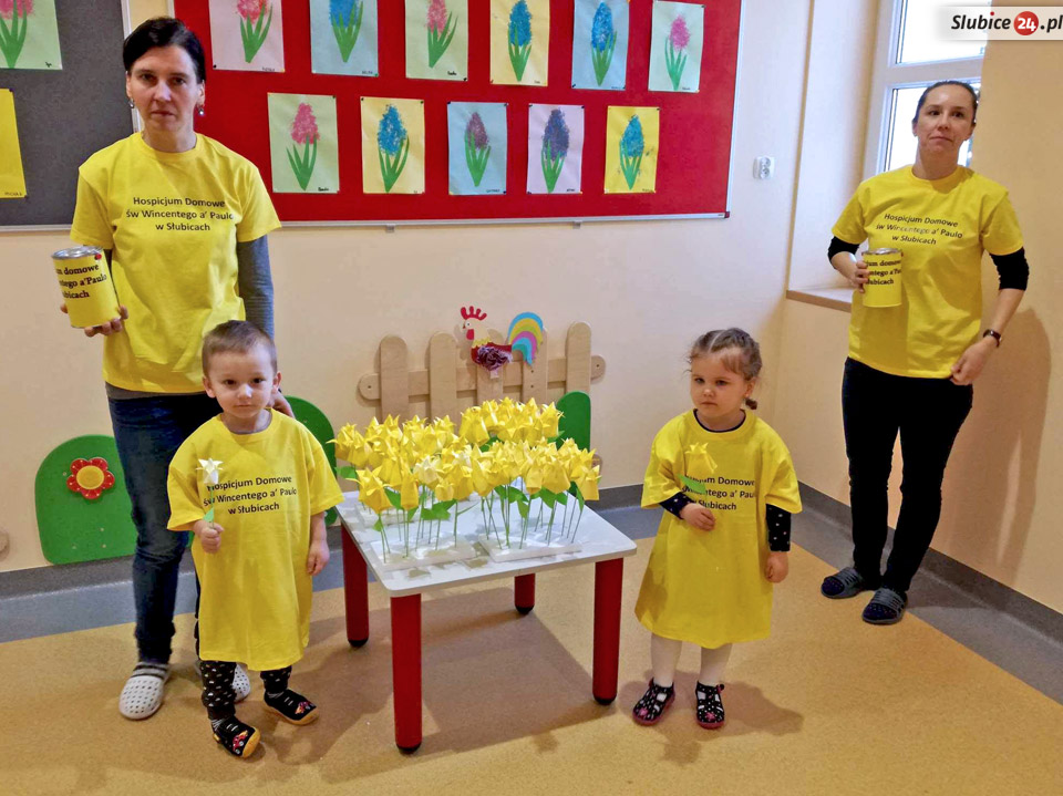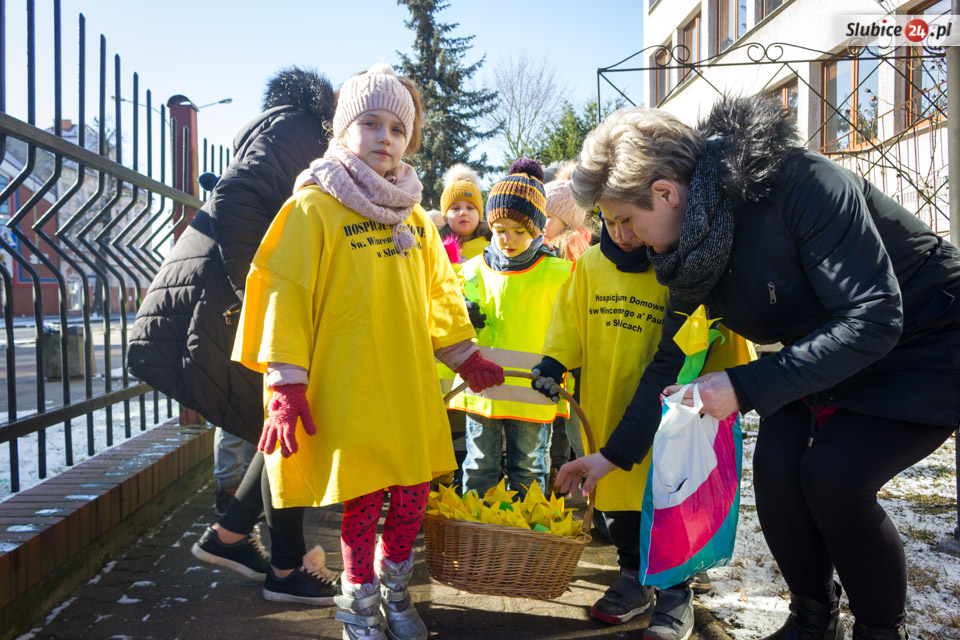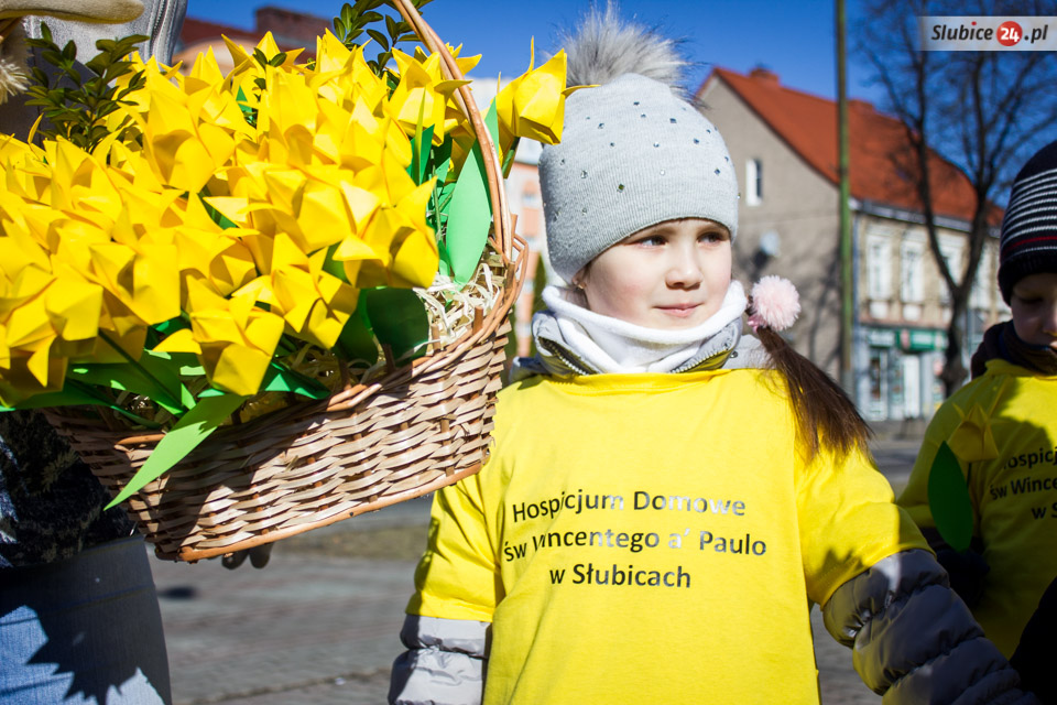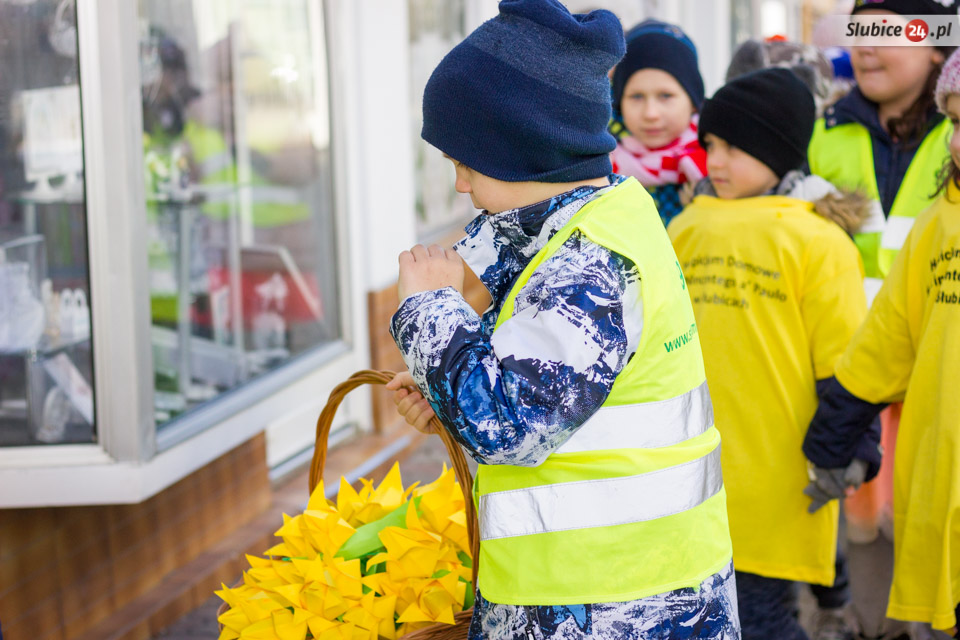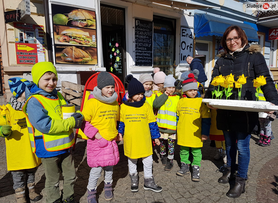 Jest moc! To jedyna taka akcja w kraju - takie rzeczy są możliwe tylko u nas. Tradycyjnie pierwszego dnia wiosny na ulice Słubic wyszły przedszkolaki ze wszystkich przedszkoli „uzbrojone” w żółte papierowe tulipany. Można było dostać je za dobrowolny datek wrzucony do puszki Hospicjum Domowego Św. Wincentego a'Paulo.