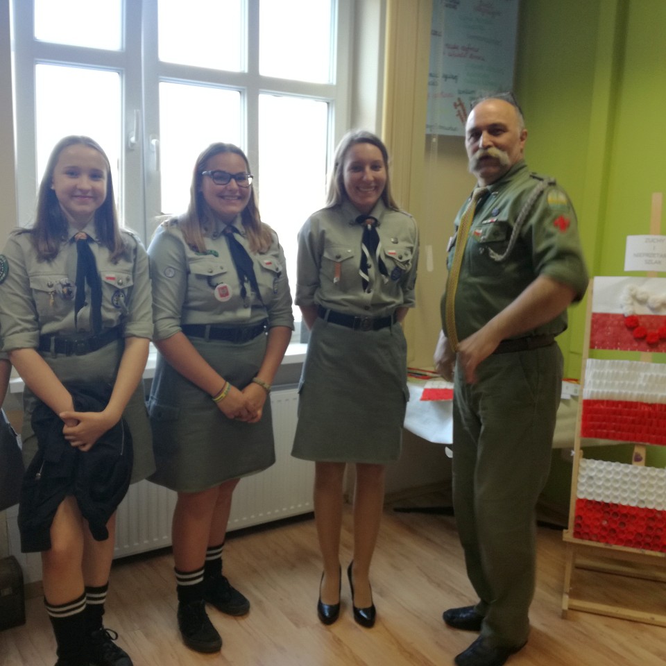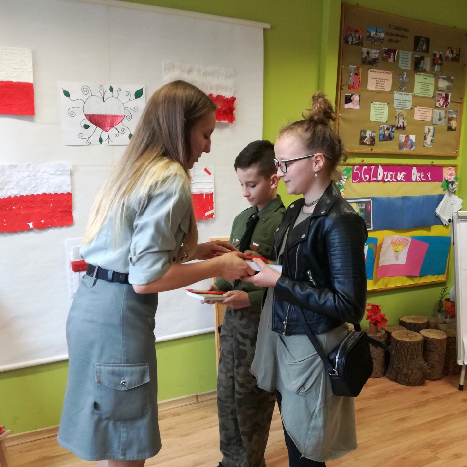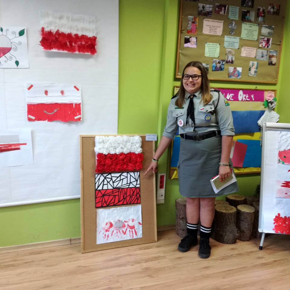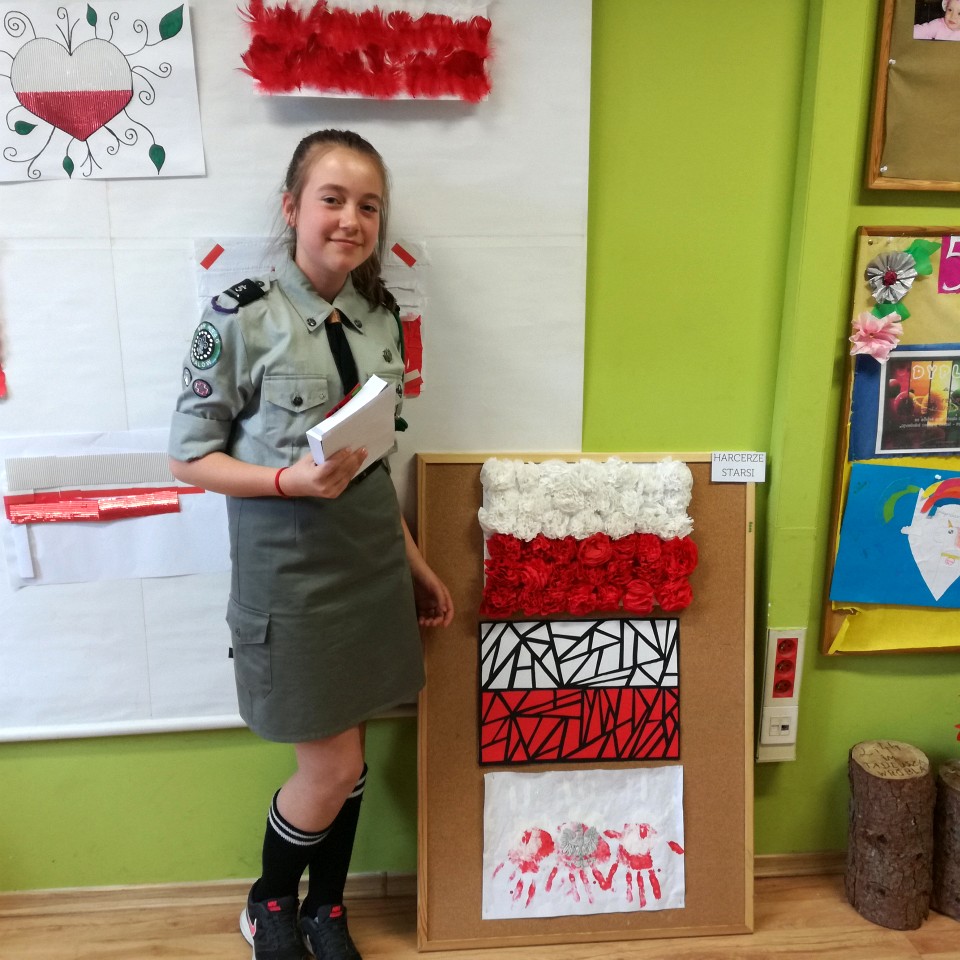 Zdobywczyni pierwszego miejsca w kategorii harcerzy starszych, Milena, przyznała, że wystartowała w konkursie, ponieważ chciała się sprawdzić. A pomysł na to, żeby flagę wykonać z kwiatów zrobionych z bibuły przyszedł jej do głowy w samochodzie. – Akurat jechałyśmy z mamą autem, powiedziałam, że szkoda, że nie ma czerwonych liści, na co mama odparła: to może zrób z kwiatów - opowiada Milena. I dodaje, że mama i siostra również pomagały jej robić te pracochłonne kwiaty. – To, że zajęłam pierwsze miejsce zawdzięczam również im – podkreślała.