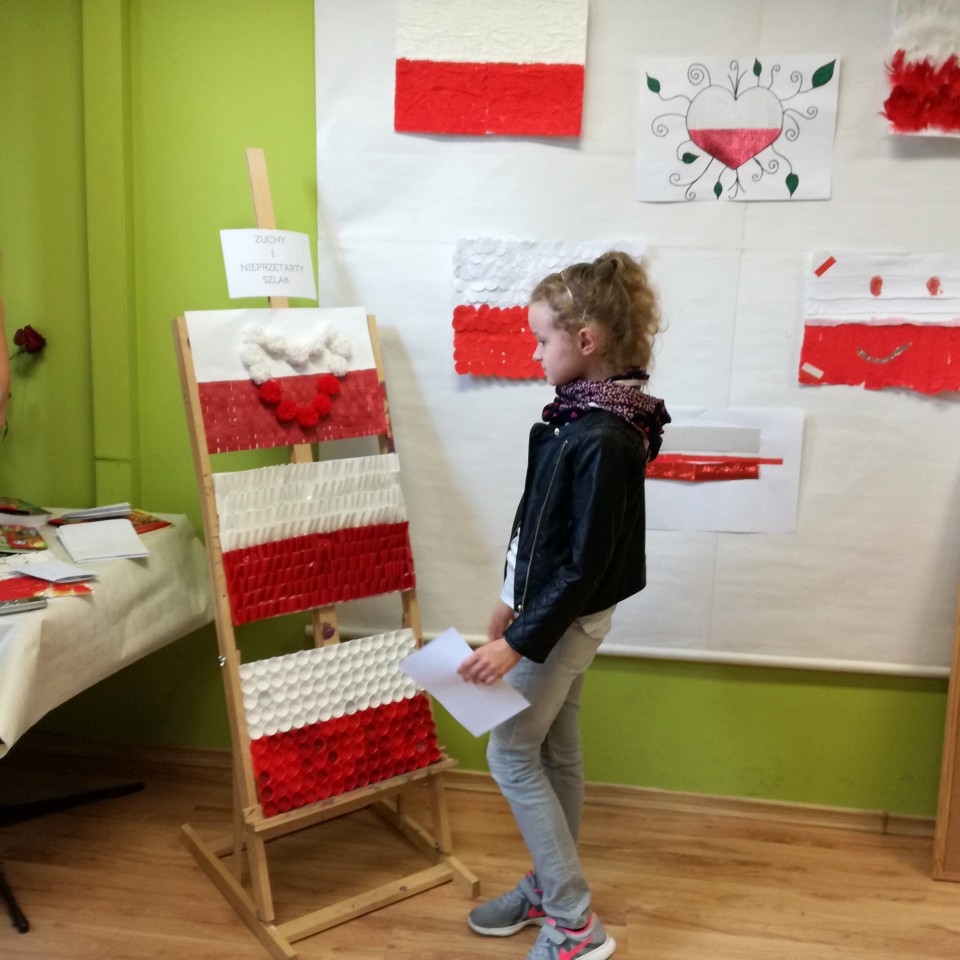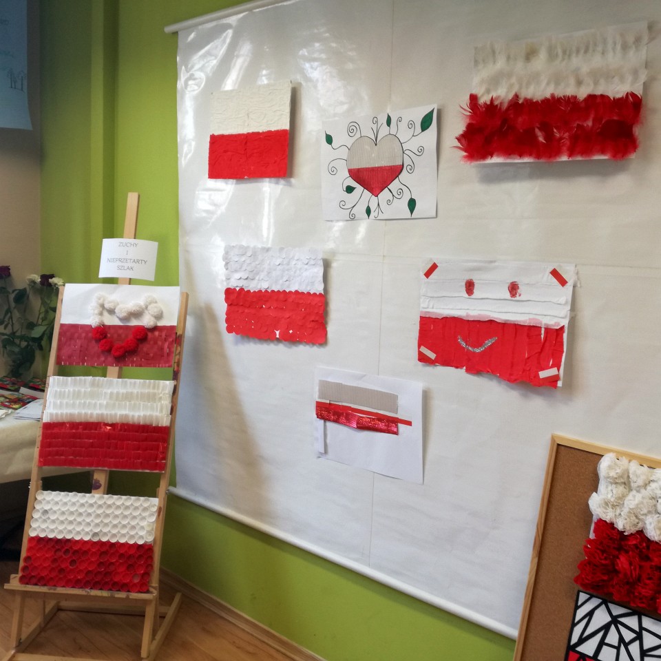– Chcieliśmy te wydarzenia uczcić i stąd pomysł, żeby podkreślić nasze czerwono-białe barwy w formie konkursu plastycznego. Rzuciliśmy hasło (flaga=symbol), a efekt jest taki, jaki widać. Może nie ma wielkiej ilości prac, ale doceniamy wkład pracy każdej osoby, która przyczyniła się do tego, że mamy tu dziś tak wspaniałą wystawę – mówił T. Strażewicz na jej otwarciu.