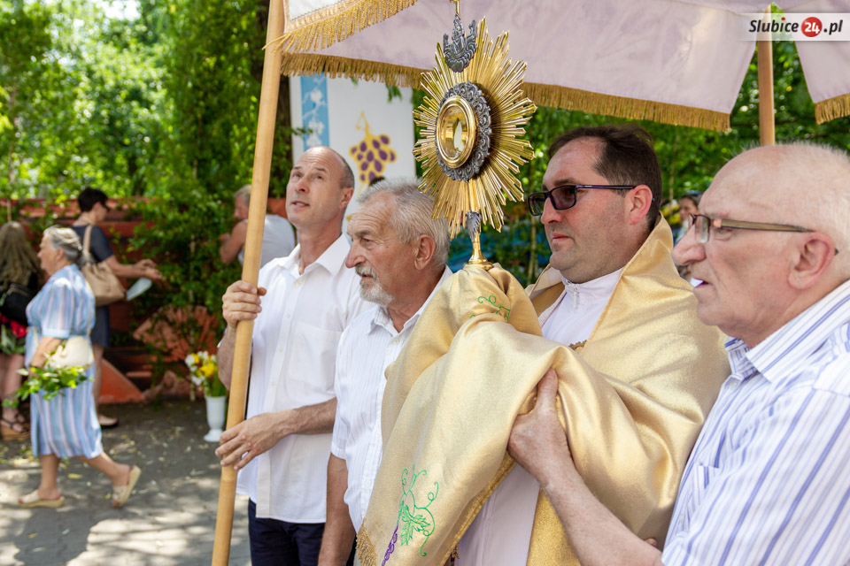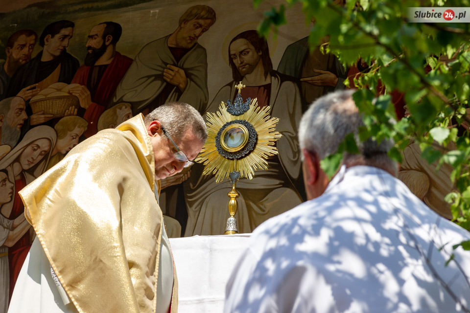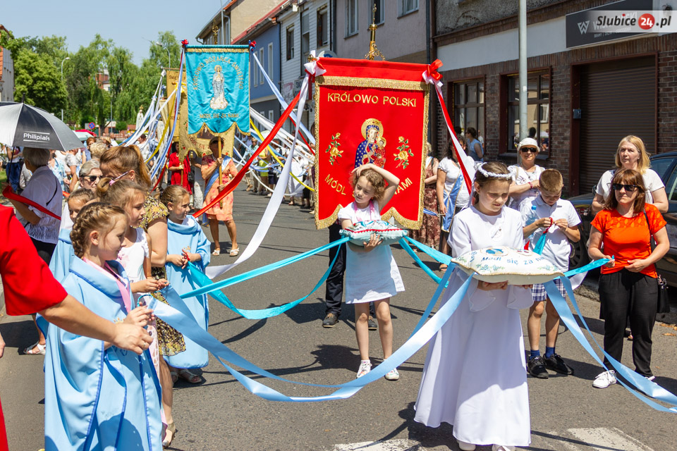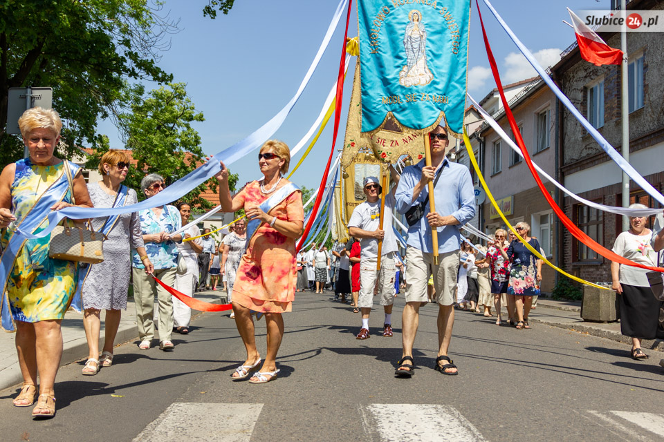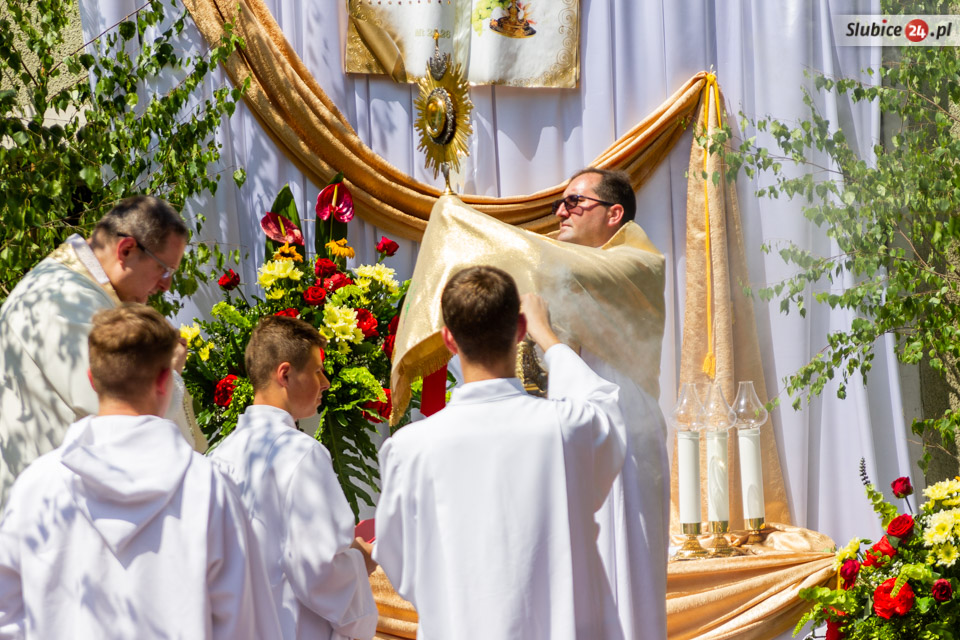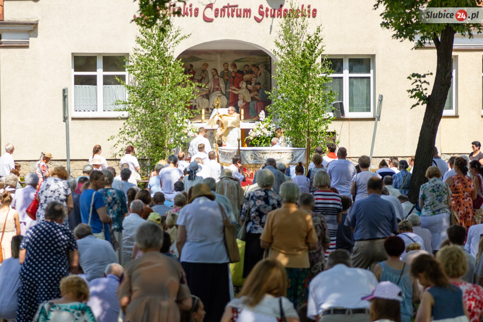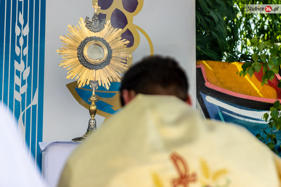 Następnie kapłani w otoczeniu wiernych ruszyli ulicami Słubic. Na trasie prowadzącej ulicami: Wojska Polskiego, Piłsudskiego, Podchorążych, Konopnickiej i Kościuszki czekały cztery ołtarze. Przy nich wierni modlili się i adorowali Najświętszy Sakrament.