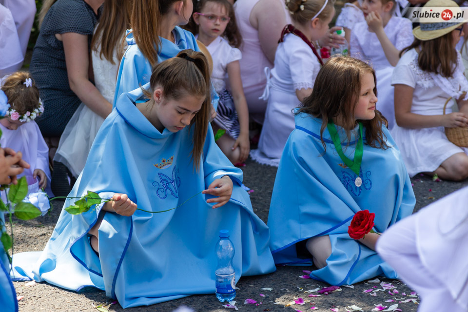 Nie zabrakło tradycyjnego sypania kwiatów, były poczty sztandarowe, a grupa wiernych niosła figurkę Matki Boskiej Fatimskiej. Końcowym przystankiem był kościół NMP Królowej Polski, gdzie odbyła się druga msza.