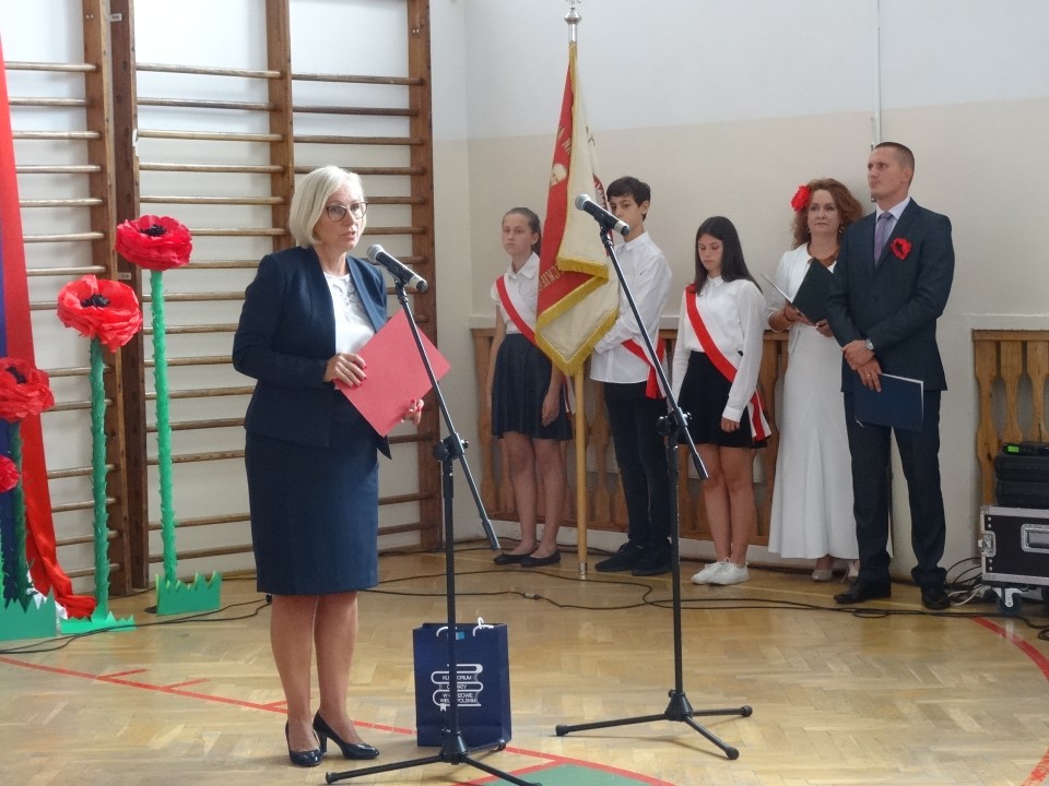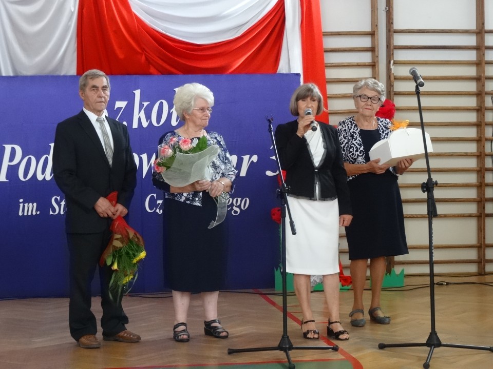 Z kolei burmistrz Tomasz Ciszewicz oprócz wspomnień, życzeń, opowiedział również o prezencie, jaki gmina szykuje dla szkoły. – Zapewne dziś najlepszym prezentem jest wiadomość o tym, że gmina jest w trakcie przygotowywania dokumentacji na budowę sali gimnastycznej. Planujemy, że do końca roku uzyskamy pozwolenie na budowę, która ruszy w przyszłym roku – obiecał. Bo, jak podkreślił, oprócz wspomnień, ważna jest również przyszłość i to, że szkoła nadal się rozwija. Życzył także, aby nigdy nie zabrakło jej uczniów.