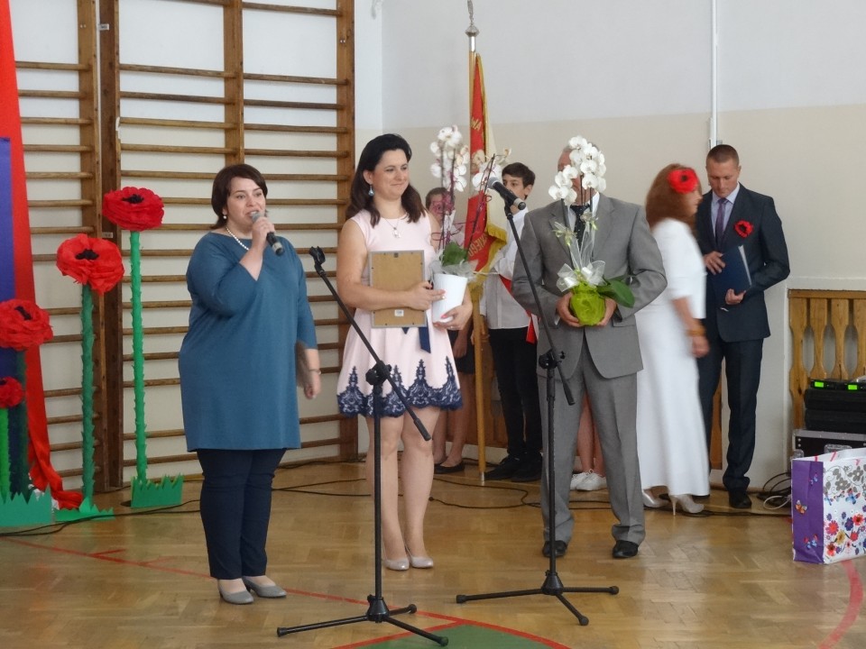 Kwiaty i życzenia przekazało również wielu pozostałych gości, m.in. Mariusz Olejniczak, szef Rady Miejskiej, oraz Weronika Bursztynowicz, prezes słubickiego oddziału Związku Nauczycielstwa Polskiego. Warto podkreślić, że w organizację uroczystości włączyła się cała społeczność szkoły, pracownicy, uczniowie, rodzice.