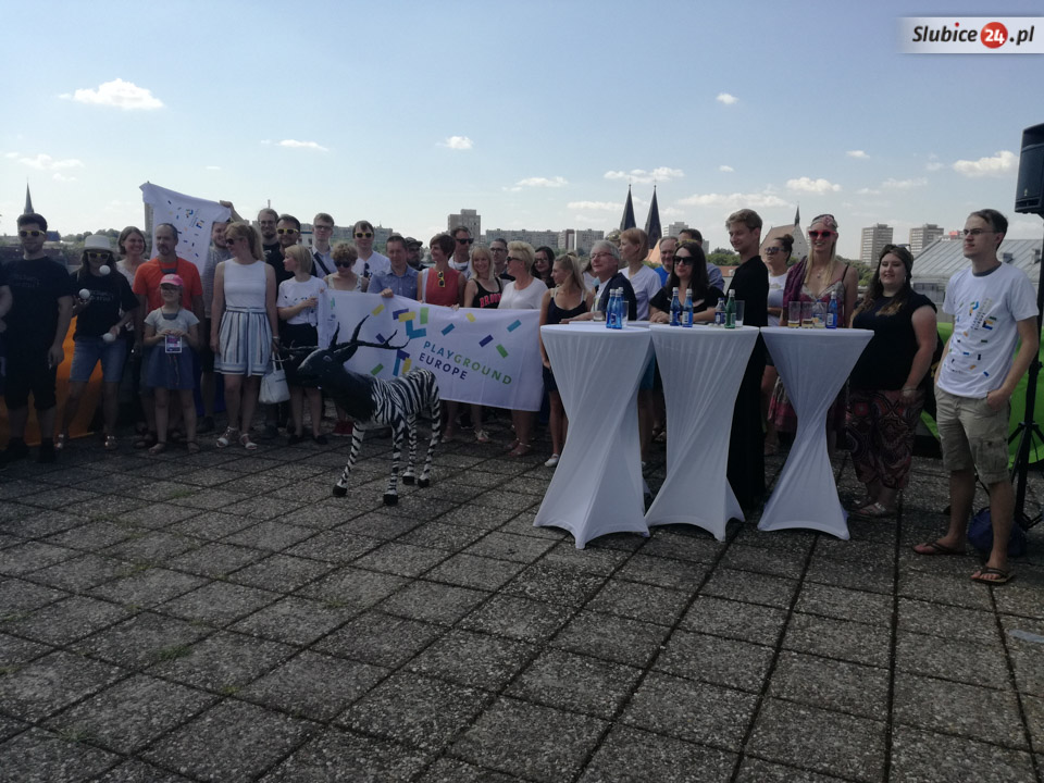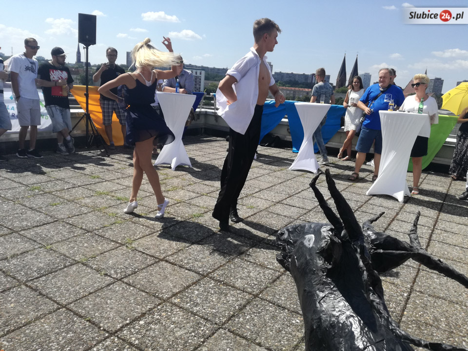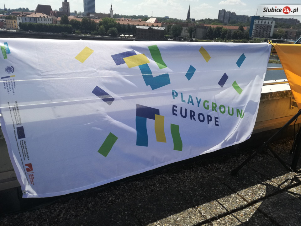 Na tarasie widokowym Collegium Polonicum 26 lipca odbyła się prezentacja – i próba - tego, jak Słubice i Frankfurt będą promowały się na Festiwalu Pol'and'Rock w Kostrzynie nad Odrą.