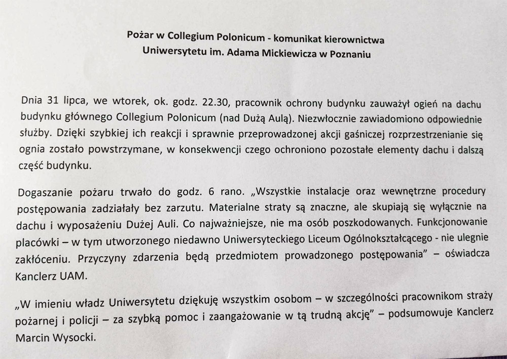 Poniżej oświadczenie jakie otrzymaliśmy od władz UAM. Publikujemy je w oryginale.