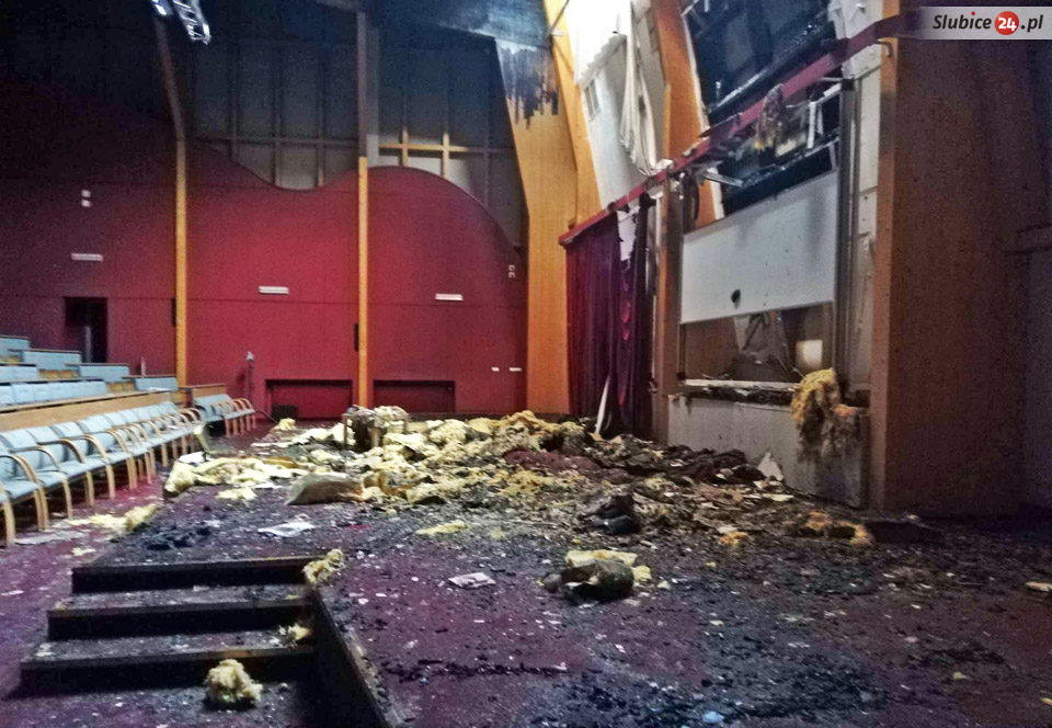 Obecnie trwa szacowanie strat i sprzątanie. W pomieszczeniach poza aulą nie widać większych uszkodzeń, ale wszystko będzie teraz dokładnie sprawdzane przez odpowiednie służby.
