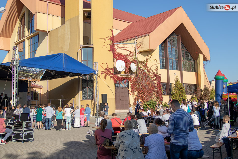 Wydarzenie rozpoczęło się równo w południe oczywiście od mszy św. A późnej był czas na radosne, rodzinne świętowanie. I trzeba przyznać, że wielu mieszkańców odpowiedziało na to zaproszenie – i na placu, i pod sceną bywało ciasno, a do loterii fantowej prawie cały czas stała kolejka… Nic dziwnego, ci, którzy wylosowali ciekawe nagrody, pokazywali je kolejnym, którzy również chcieli spróbować szczęścia…