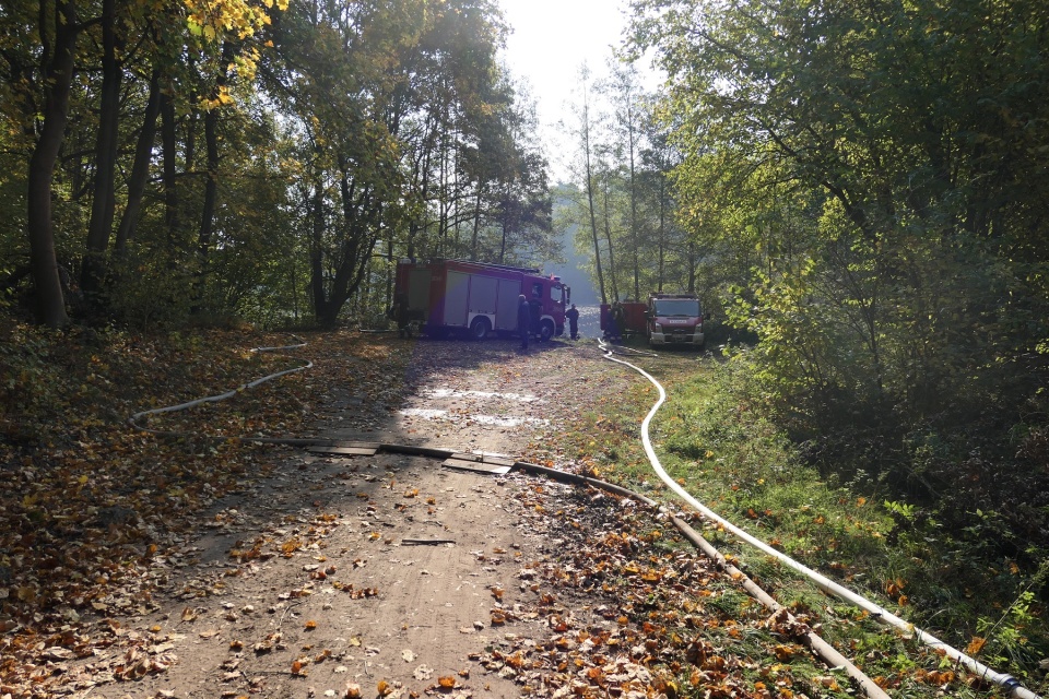 Kiedy na miejsce docierają kolejne zastępy, strażacy dzielą teren działań na odcinki bojowe i zajmują się obroną zagrożonych budynków i gaszeniem płonącego lasu.