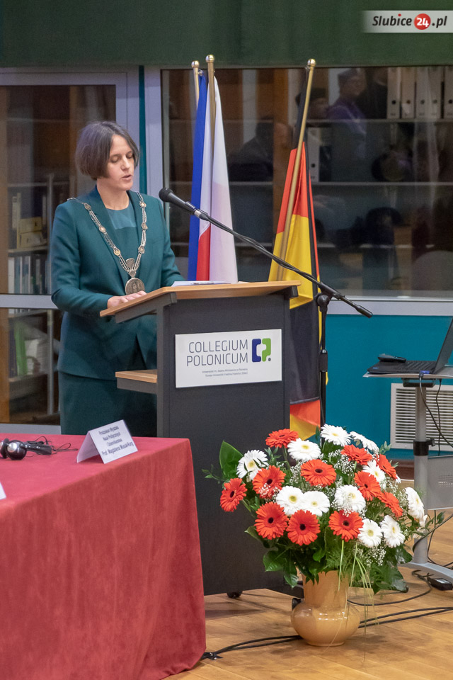 Do rozwoju i pogłębiania współpracy z UAM, poprzez wspólną jednostkę, jaką jest Collegium Polonicum, odniosła się również prof. dr Julia von Blumenthal, nowa prezydentka Uniwersytetu Europejskiego Viadrina. Swoje przemówienie wygłosiła… po polsku, choć nie zna naszego języka, podjęła trud, aby je przeczytać. – Od 27 lat UAM jest strategicznym transgranicznym partnerem Viadriny, a CP wynikiem i owocem tej współpracy. Prowadzimy wspólne kierunki studiów, a niedługo powołamy nowy projekt, European New School for Digital Studies – przypomniała prezydentka.