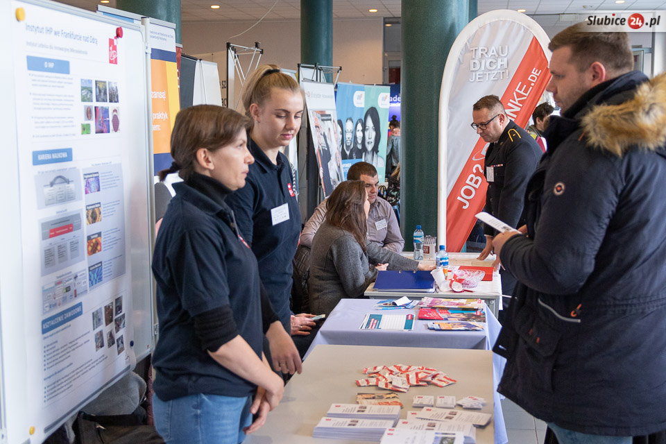 Na stoiskach zaprezentowało się 53 wystawców, były wśród nich szkoły średnie z regionu, szkoły wyższe, firmy z Polski i Niemiec. - Namawiamy do kształcenia naukowego w instytucie naukowo-badawczym we Frankfurcie, to brzmi groźnie, ale można zdobyć u nas zawód, a do tego, co pewnie jest kuszące, w niemieckim systemie za naukę dostaje się pieniądze – mówiła dr Anna Sojka-Piotrowska z IHP – Instytutu Leibniza dla innowacyjnej mikroelektroniki z Frankfurtu nad Odrą, który po raz pierwszy wystawiał się na tych targach. Zachęcała młodzież do kształcenia zawodowego w instytucie, w zawodach takich jak m.in. mikrotechnolog, mechatronik, technik informatyk, technik biurowy.