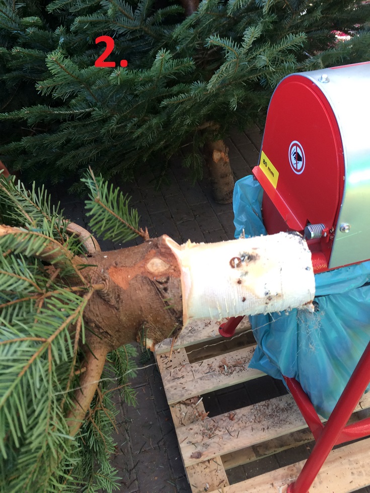 Tylko w Centrum Ogrodniczym Agrogobex każdy klient, który zakupi choinkę ciętą otrzyma darmową usługę frezowania pnia choinki profesjonalną frezarką (patrz foto).