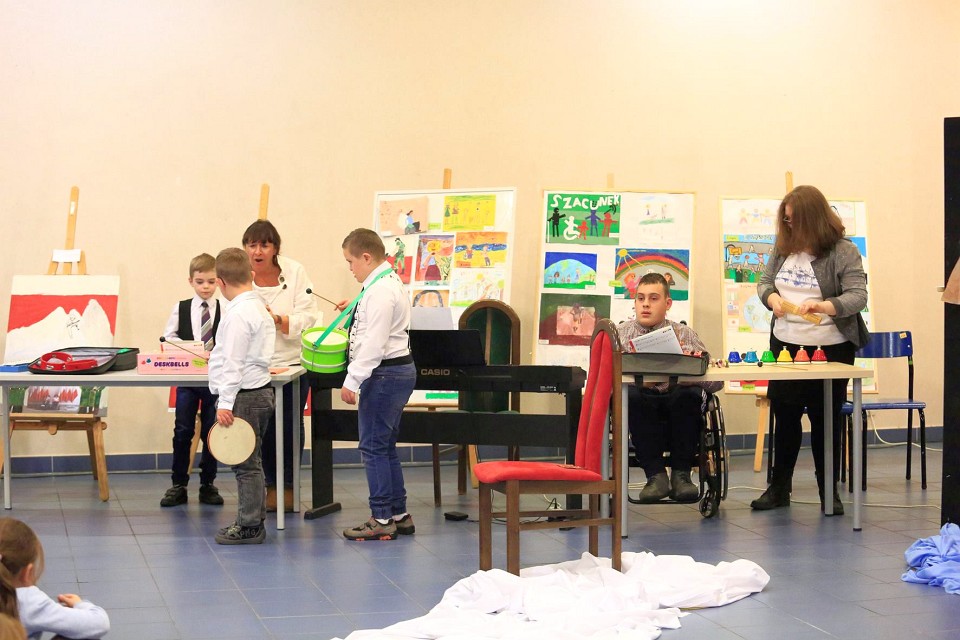 A co takiego przygotowały? – Najpierw dzieci wzięły udział w muzykoterapii, którą poprowadziła Barbara Weiser-Lada, a potem rozpoczęły się przedstawienia. Zaprezentowały je uczniowie i nauczyciele ze Specjalnego Ośrodka Szkolno-Wychowawczego i Środowiskowego Domu Samopomocy – opowiada prezes stowarzyszenia.