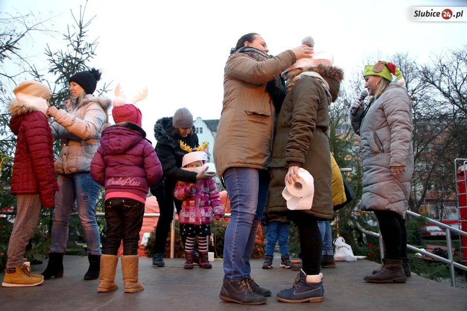 16 grudnia już po raz trzeci Fundacja Grupy Pomagamy zaprosiła mieszkańców Słubic na Miejską Wigilię. Na scenie odbywały się rożne konkursy, gry i zabawy, na przykład wyłoniono mistrza limbo, czy sprawdzono, jak tatusiowie radzą sobie z wieszaniem prania. A dokładniej, takie zadanie dostały pary: tato z synem lub córką. I mieli ciekawe pomysły na to, jak na małym sznurku zmieścić wiele ubrań! Choć nie było śniegu, na scenie pojawiły się również… bałwanki. Owinięte papierem toaletowym, co było kolejnym z zadań.