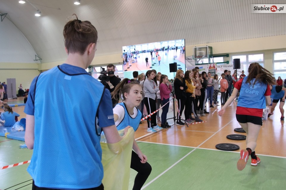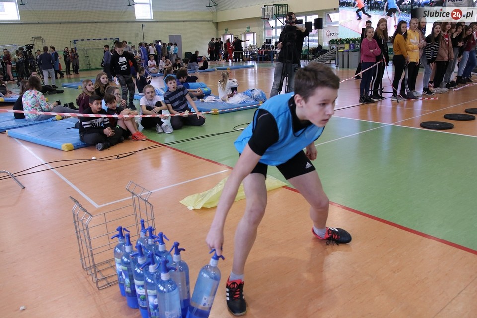 Zawodnicy reprezentujący poszczególne szkoły ścigali się kolejno klasami, od 6 do 8. Na deser odbyła się rywalizacja reprezentacji gimnazjów z przedstawicielami… ambasadorów, czyli wspomnianych słubickich sportowców. I była bardzo zacięta, zakończyła się dogrywką. O zwycięstwie zdecydowała… 1 sekunda! O tyle szybsi od drużyny sportowców okazali się zawodnicy z Gimnazjum nr 2.