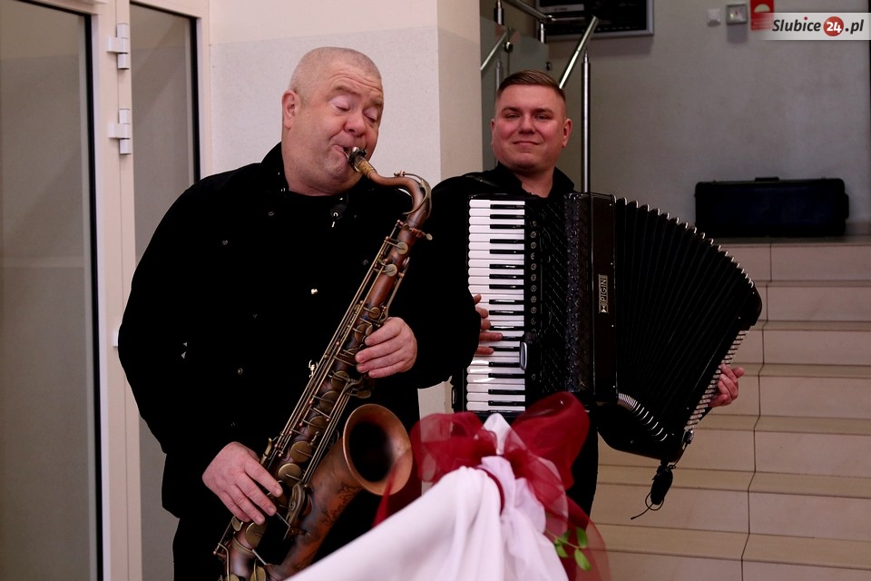 A później małżonkowie odebrali medale z rąk burmistrza i przewodniczącego. Uroczystość zakończył toast i symboliczna lampka szampana. Na akordeonie i saksofonie zagrali dla jubilatów Mariusz Ambrożuk i Marcin Stachowiak.