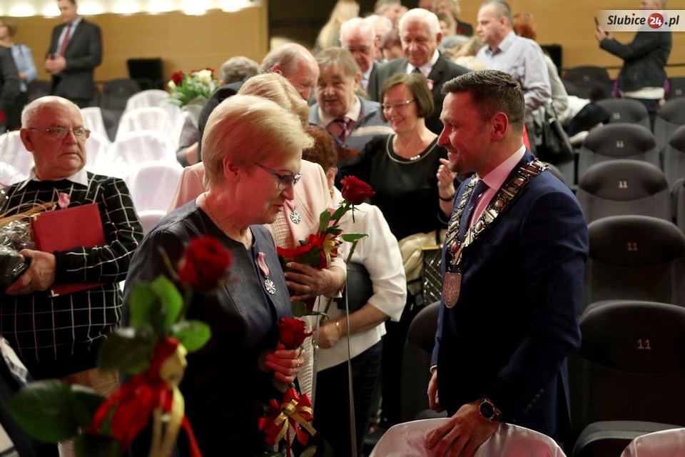 - Bywa tak, że niektórzy nie potrafią obronić uczucia, ale wy dostojni jubilaci jednak nieprzerwanie od 50 lat trwacie w miłości, poszanowaniu wzajemnej, adoracji. Wasza miłość potrafiła wytrzymać różne, czasem bardzo ciężkie i dramatyczne chwile. Jubilaci, całym swoim życiem zasłużycie na uznanie i szacunek – mówił burmistrz Słubic Mariusz Olejniczak, gratulując wszystkim parom.