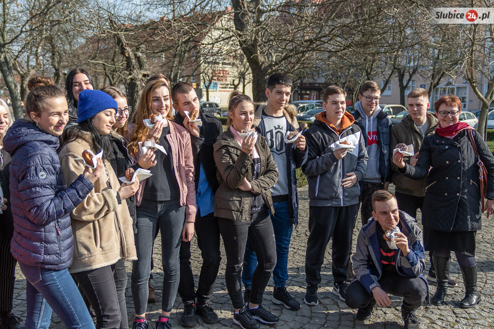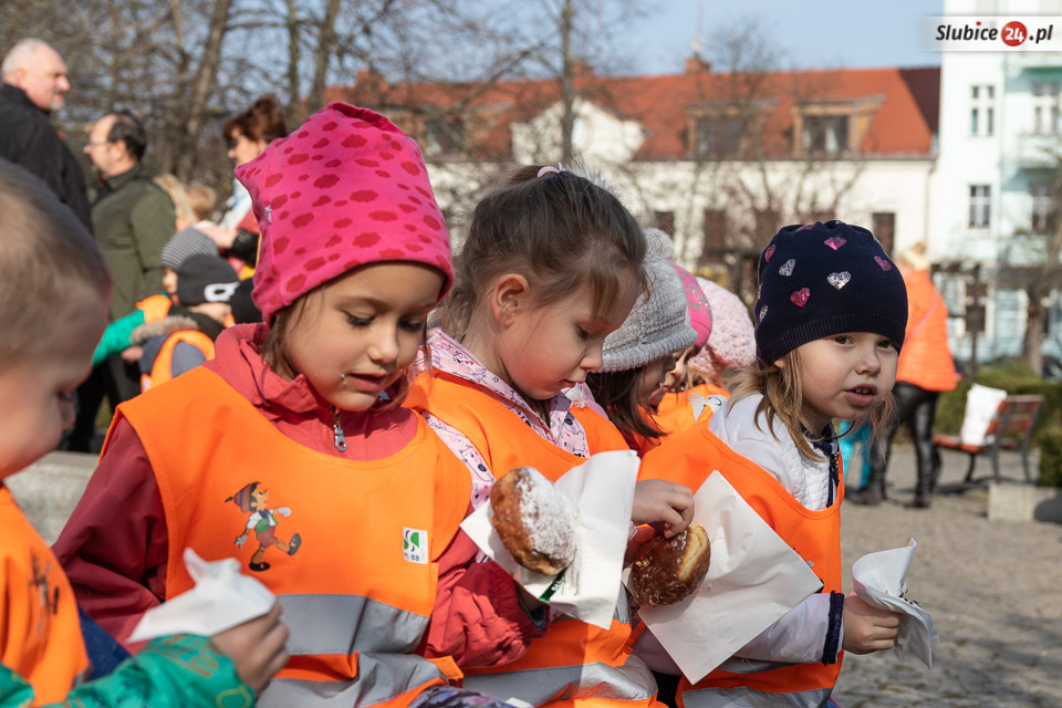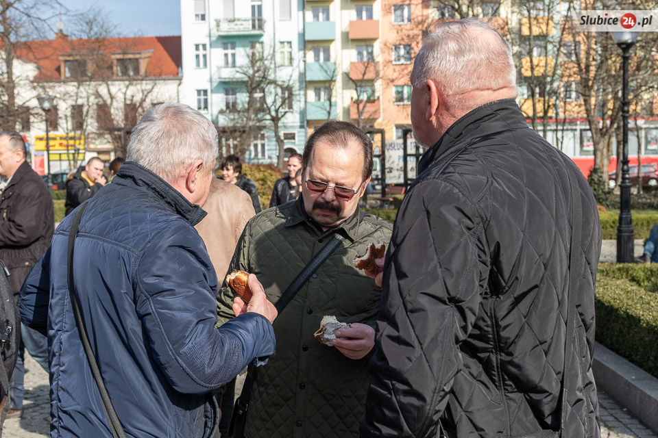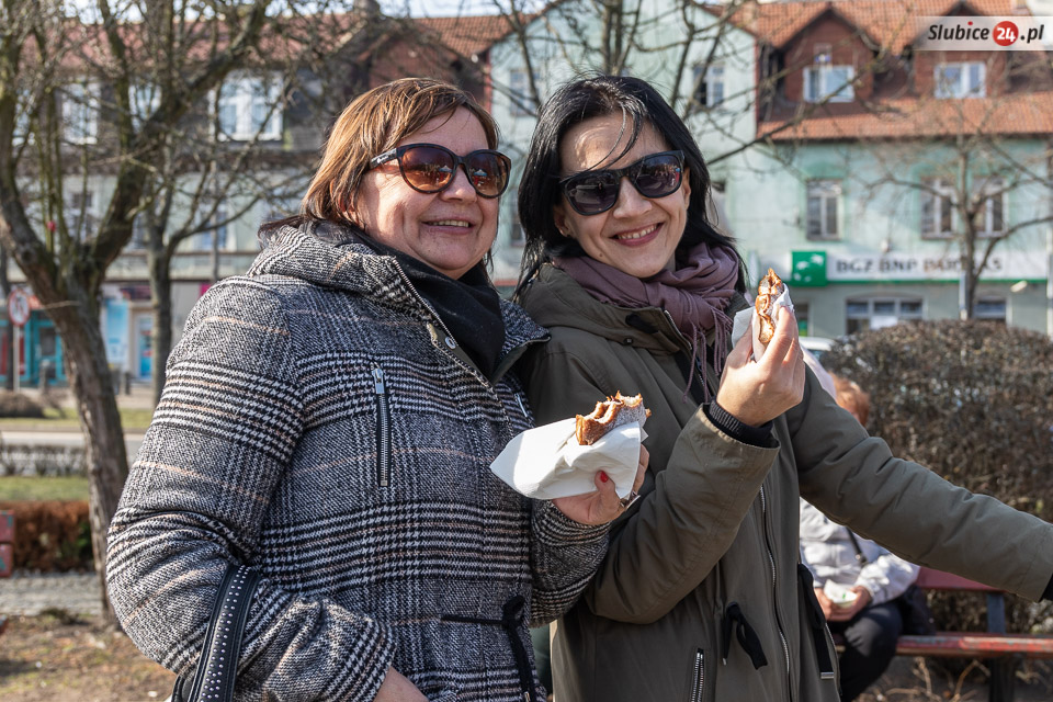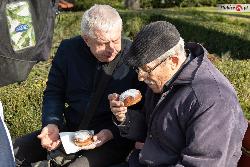 Obaj burmistrzowie życzyli wszystkim smacznego – i dwa razy nie musieli zachęcać do częstowania się pączkami. Wszyscy tłumnie ruszyli po słodkie wypieki. Wśród czekających na nie były zarówno dzieci z przedszkoli, słubickich szkół, jak i przechodnie.