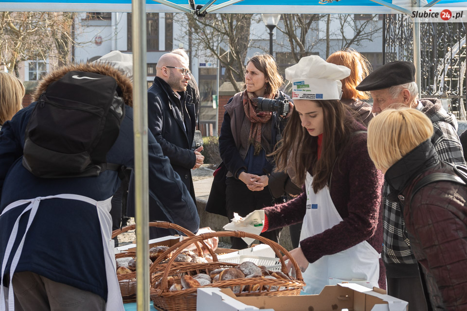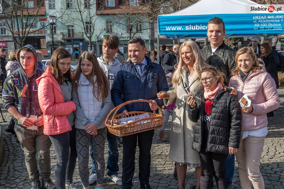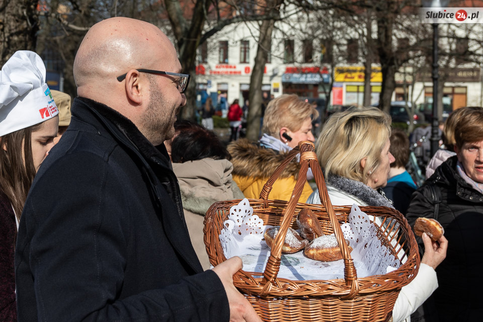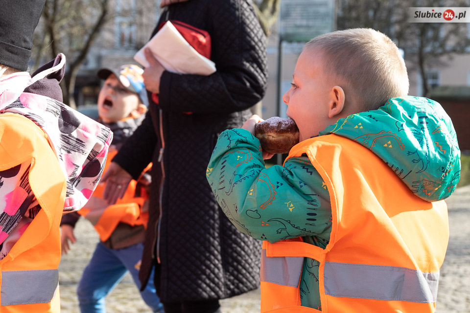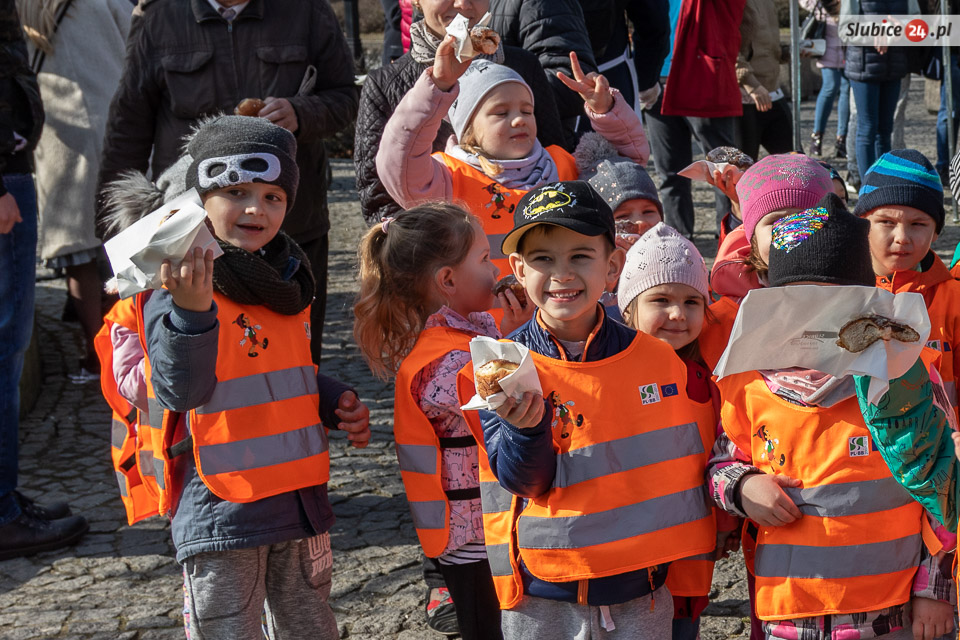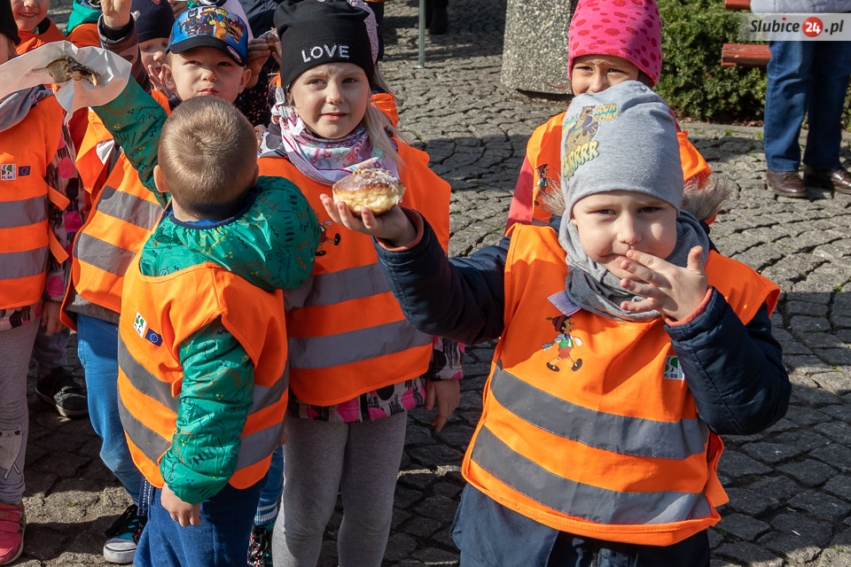 Obaj burmistrzowie życzyli wszystkim smacznego – i dwa razy nie musieli zachęcać do częstowania się pączkami. Wszyscy tłumnie ruszyli po słodkie wypieki. Wśród czekających na nie były zarówno dzieci z przedszkoli, słubickich szkół, jak i przechodnie.