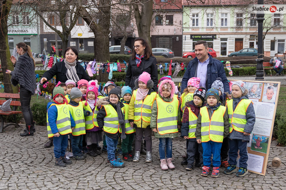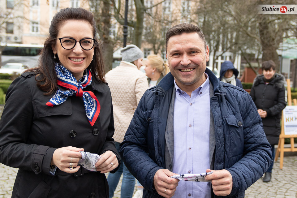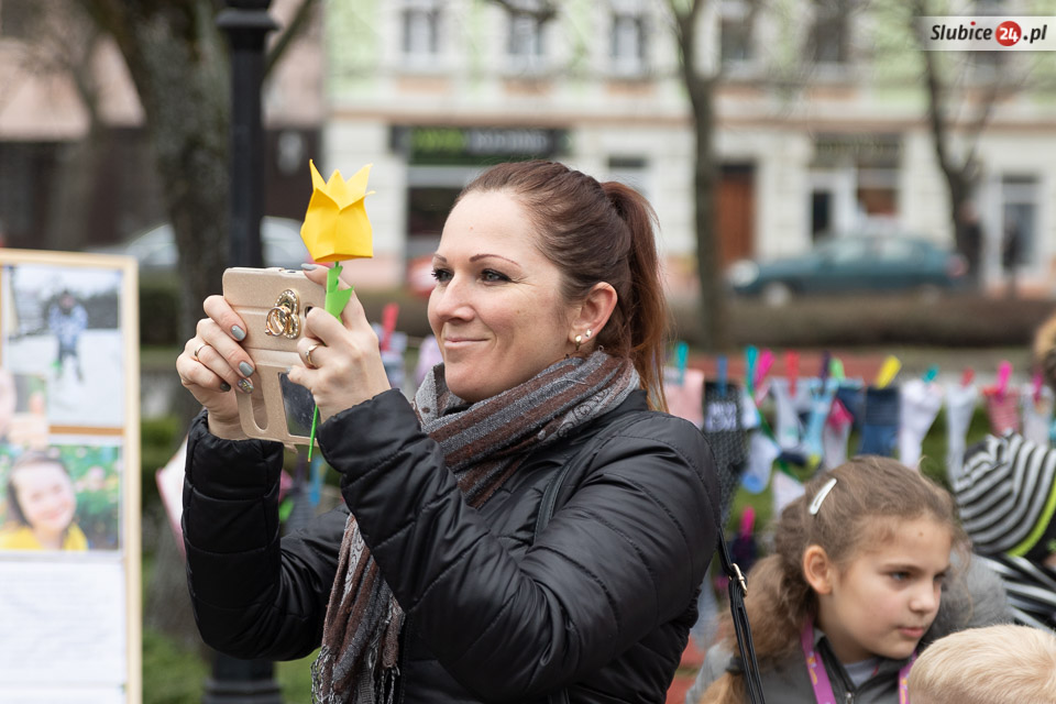 Na happening przyszedł również burmistrz Mariusz Olejniczak (w dwóch kolorowych skarpetkach) ze swoją zastępczynią Adrianą Dydyną-Marycką. - Postanowiłem również odpowiedzieć na apel stowarzyszenia, żeby pokazać swoje wsparcie dla osób z zespołem Downa. To bardzo piękna inicjatywa, bardzo dobrze, że odbywają się tego rodzaju happeningi – podkreśla M. Olejniczak.
