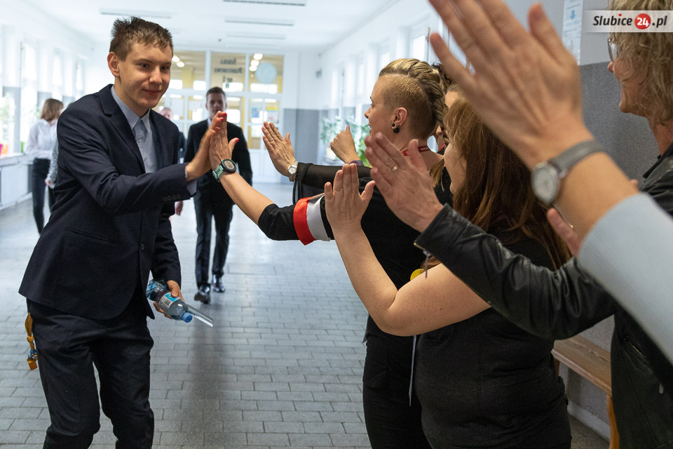 W Gimnazjum nr 1 nauczyciele mogli liczyć na wsparcie swoich uczniów, którzy przyszli na egzaminy. Choć z oczywistych względów nie uczestniczyli w nich osobiście, to dodawali im otuchy m.in. przybijając piątki. A młodzież zgodnym chórem wspierała swoich belfrów. - Popieramy strajk w 100% - mówiła nam grupka gimnazjalistów tuż przed wejściem na salę.
