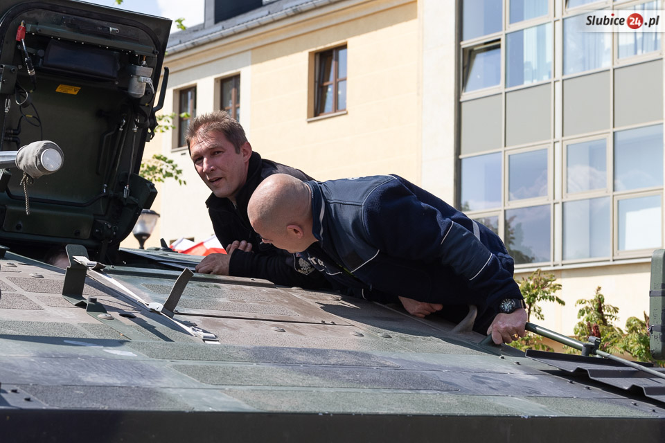 Żołnierze przyjechali do Słubic z okazji 74. rocznicy zakończenia II wojny światowej. 8 maja, w Narodowy Dzień Zwycięstwa, na parkingu przy dworcu autobusowym swój sprzęt pokazali żołnierze drużyny piechoty zmotoryzowanej z Międzyrzecza. Niedaleko swój wóz gaśniczy zaparkowali także druhowie z OSP Słubice.