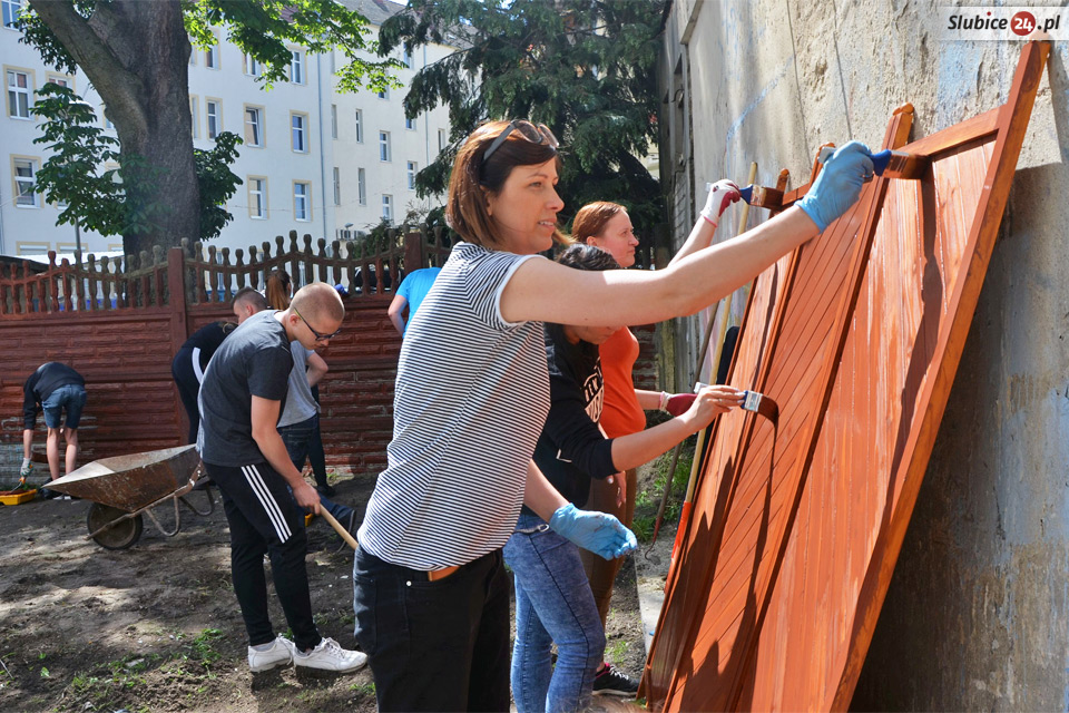 24 maja był pierwszym dniem wytężonej pracy. - Przyjechałem pomóc! Co mogę robić? – zadeklarował wicestarosta Robert Włodek. – Idę przynieść białą farbę, możemy zabrać się za malowanie ściany – odpowiedziała Anna Gołębiowska, dyrektor PCPR w Słubicach. Już od rana razem z seniorami i podopiecznymi Placówki Opiekuńczo-Wychowawczej „Nasza Chata” z Cybinki malowała mur i drewniane parawany. W prace zaangażowała byl także Dorota Łazarczyk, szefowa "Naszej Chaty".
