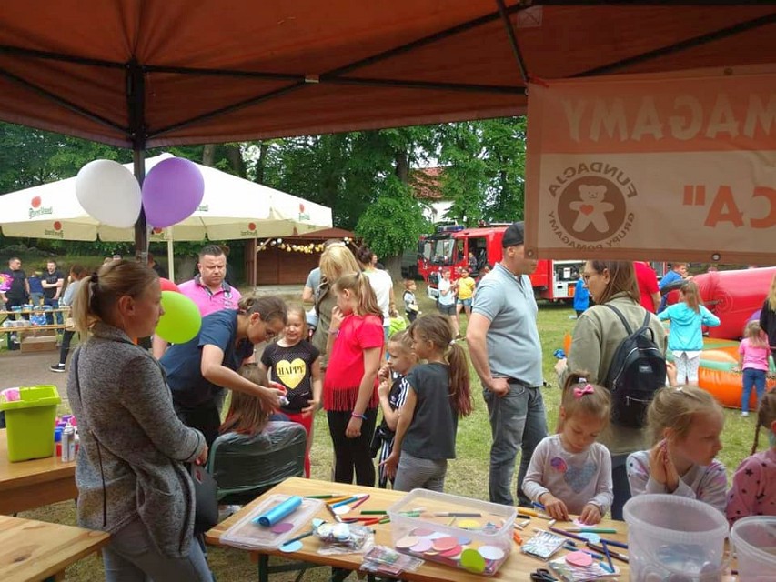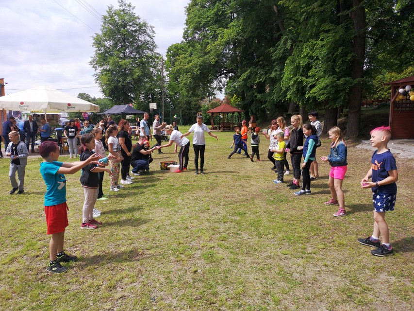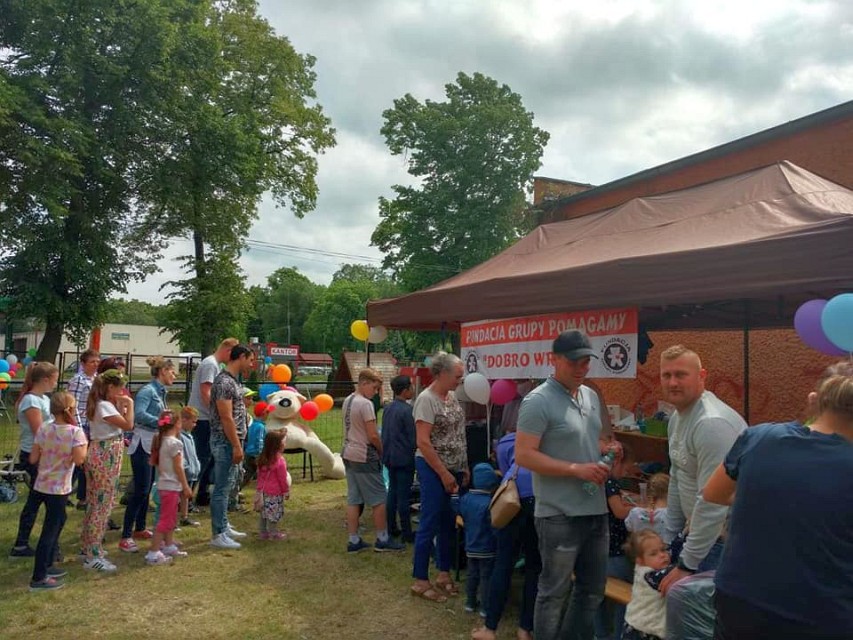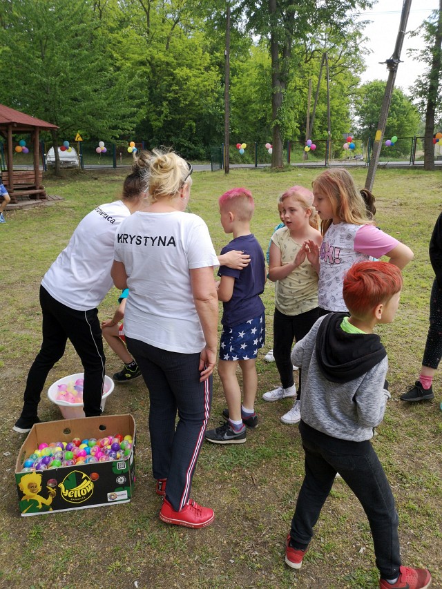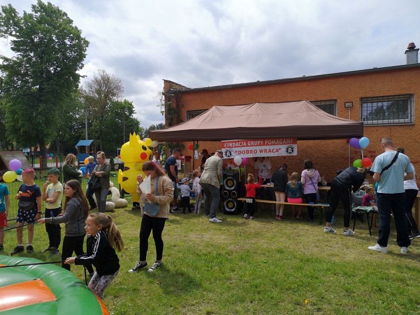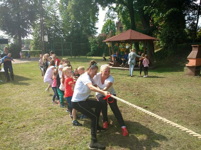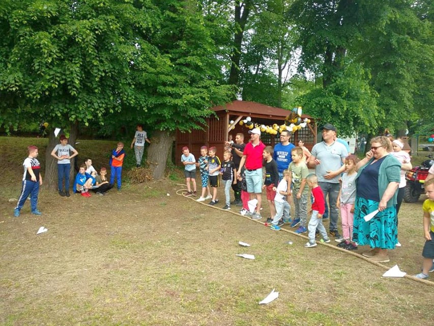 Na placu przed świetlicą na gości czekało wiele atrakcji. Fundacja Grupy Pomagamy przygotowała gry, zabawy, animacje, w których chętnie brały udział nie tylko dzieci. Było przeciąganie liny, wyścigi – i wiele innych pomysłowych konkurencji.