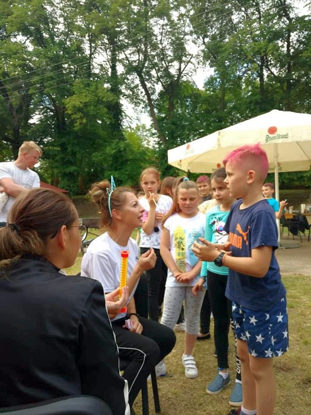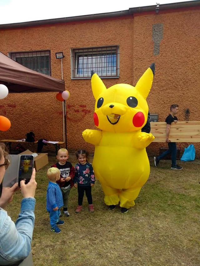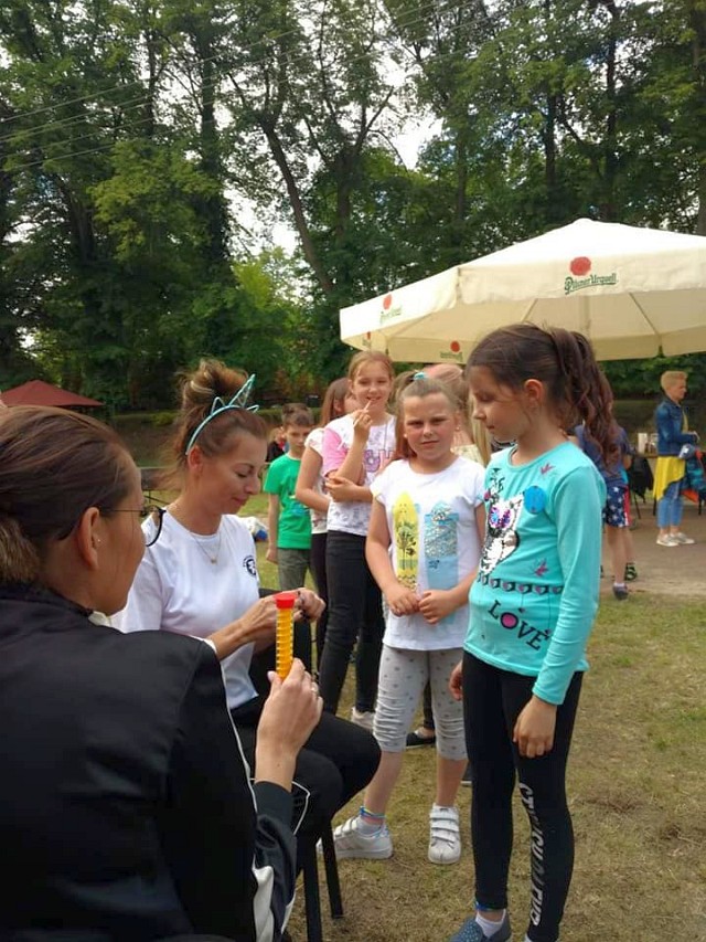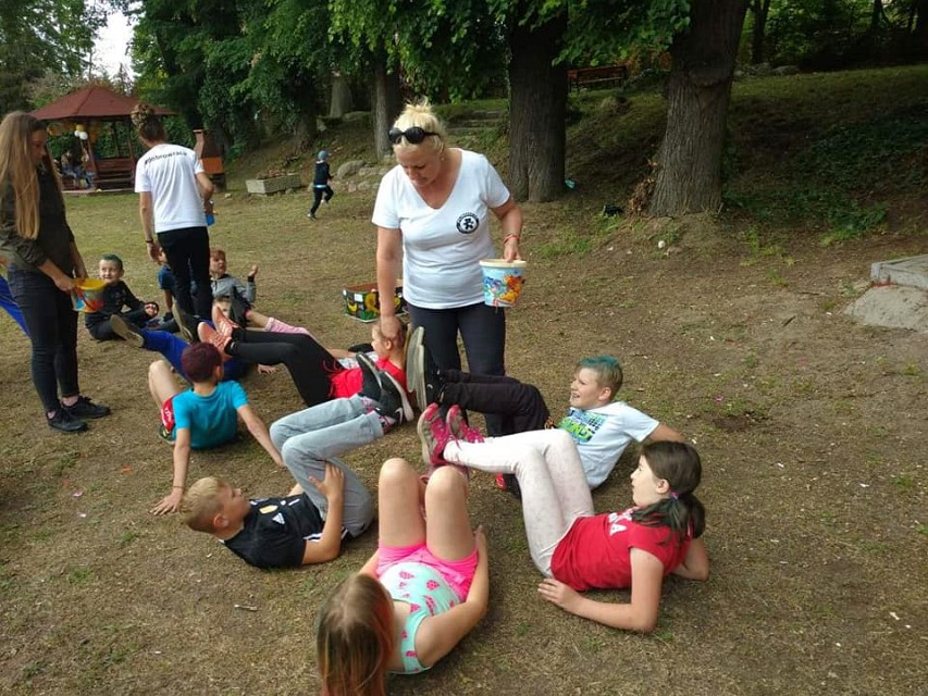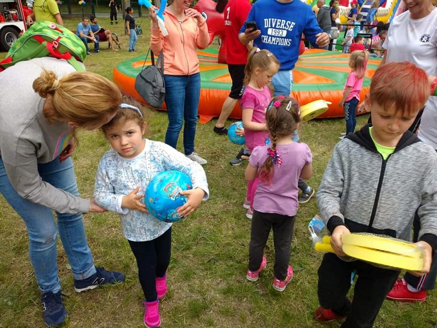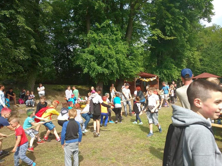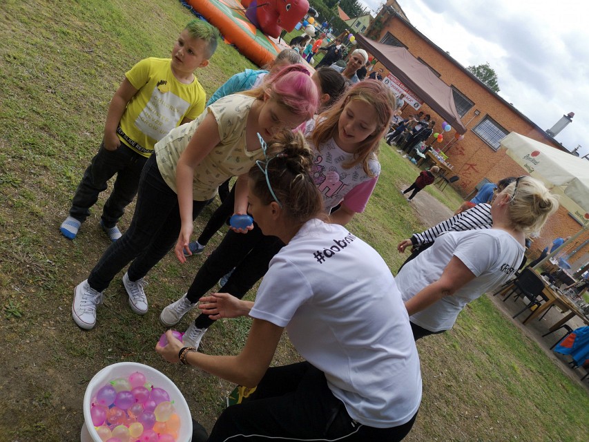 Na placu przed świetlicą na gości czekało wiele atrakcji. Fundacja Grupy Pomagamy przygotowała gry, zabawy, animacje, w których chętnie brały udział nie tylko dzieci. Było przeciąganie liny, wyścigi – i wiele innych pomysłowych konkurencji.