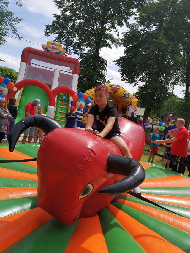 Dzieci spalały nadmiar energii i kalorii na dmuchańcach, ale nie tylko skakały i zjeżdżały – co odważniejsi próbowali „ujeżdżać byka”. Dmuchańce wystawiło „po sąsiedzku” Rodzinne Centrum Rozrywki Uśmiechnięta Planeta. Jak zawsze na festynach, popularnością cieszył się sprzęt, który przywieźli ze sobą strażacy z OSP.