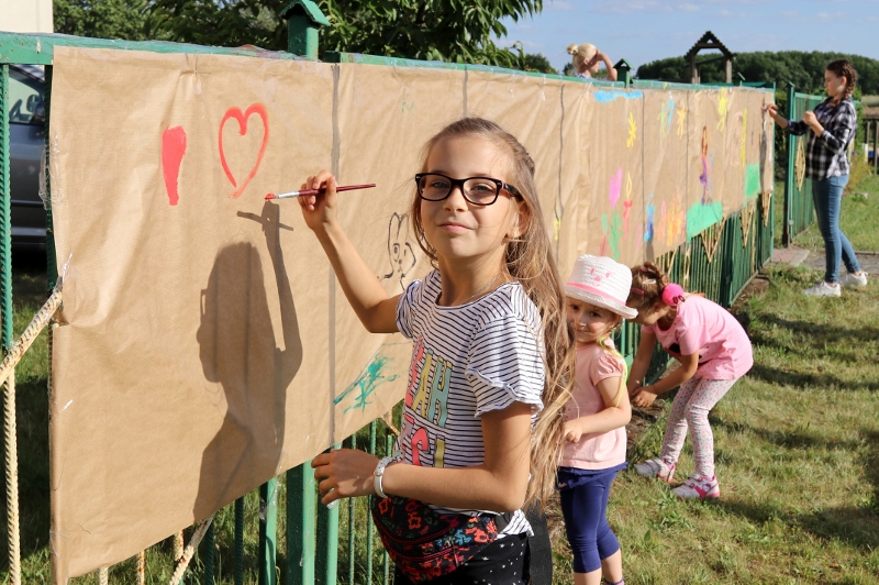 Nie brakowało oczywiście okazji do zabawy! Chętni mogli wziąć udział w konkursie na ekologicznego stworka kosmicznego, namalować siebie szczęśliwego na wielkim arkuszu, zagrać w dwa ognie, czy poskakać i zjeżdżać na wielkim dmuchańcu. Można było również sfotografować się w kwiecistej ramie, efekty będzie można podziwiać podczas kolejnej imprezy, którą będzie Dzień Seniora.