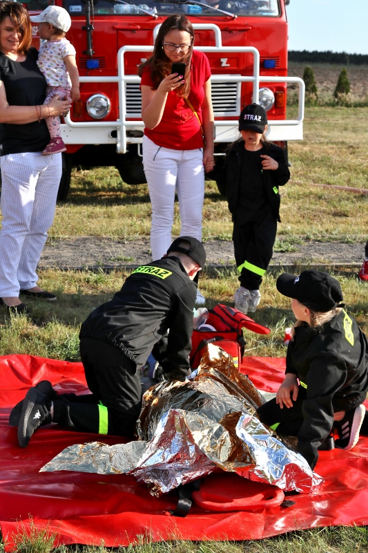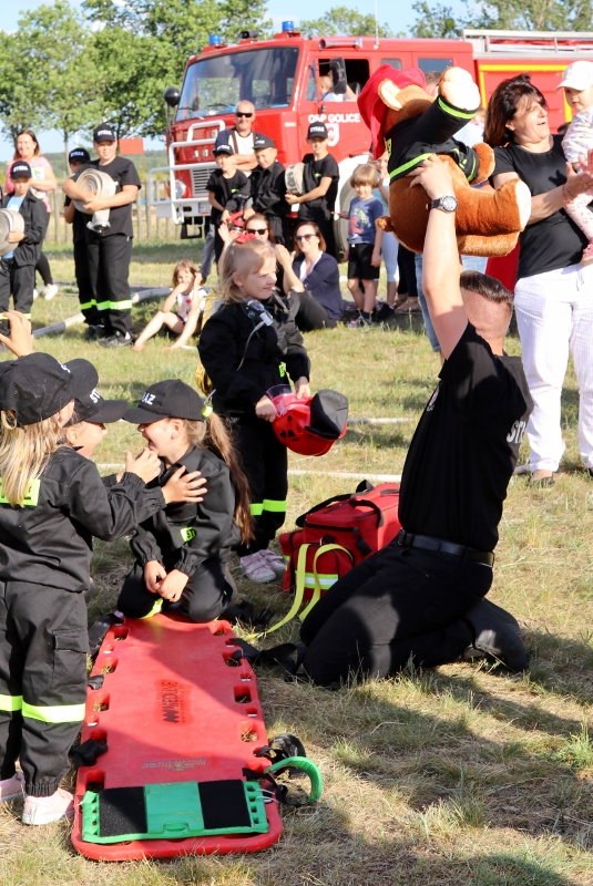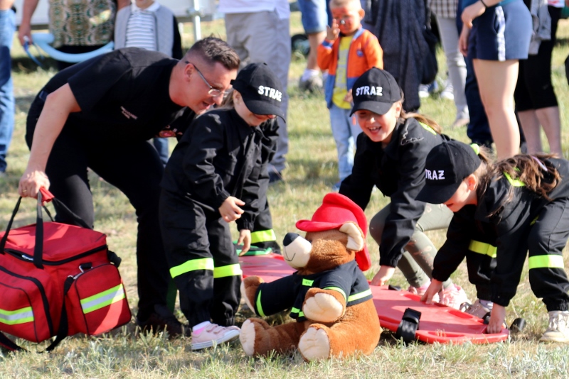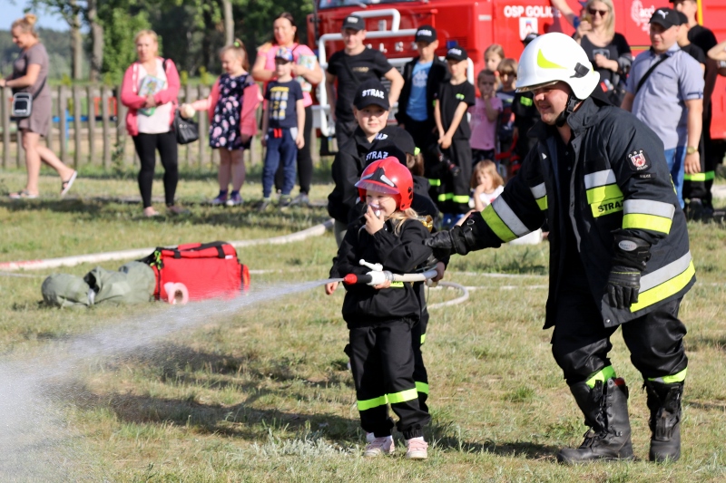 Kolejne atrakcje czekały na boisku. To tu do akcji szykowali się mali strażacy – grupa działająca pod opieką druhów z OSP Golice. Najpierw młodsi, a potem starsi pokazali, że wiele już wiedzą o strażackim rzemiośle. Obie grupy dzielnie gasiły pożar i udzielały ofiarom pierwszej pomocy. Zebrali wiele oklasków od publiczności – wśród gości podziwiających ich umiejętności był m.in. burmistrz Słubic Mariusz Olejniczak.