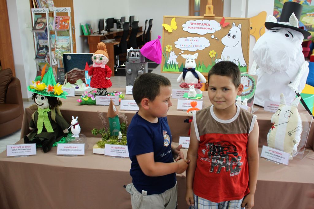 O laureatach już pisaliśmy – ZOBACZ WYNIKI. 12 czerwca autorzy muminkowych postaci spotkali się w bibliotece, aby otrzymać nagrody i podziękowania. Zaproszonych gości witała wystawa stworzona z prac wszystkich uczestników konkursu. A wśród nich m.in. Mała Mi, tata Muminek, mama Muminek, Włóczykij, Bobek oraz piękna i tajemnicza dolina Muminków.