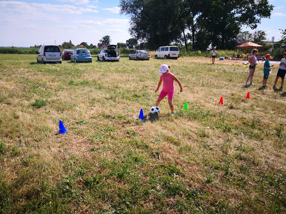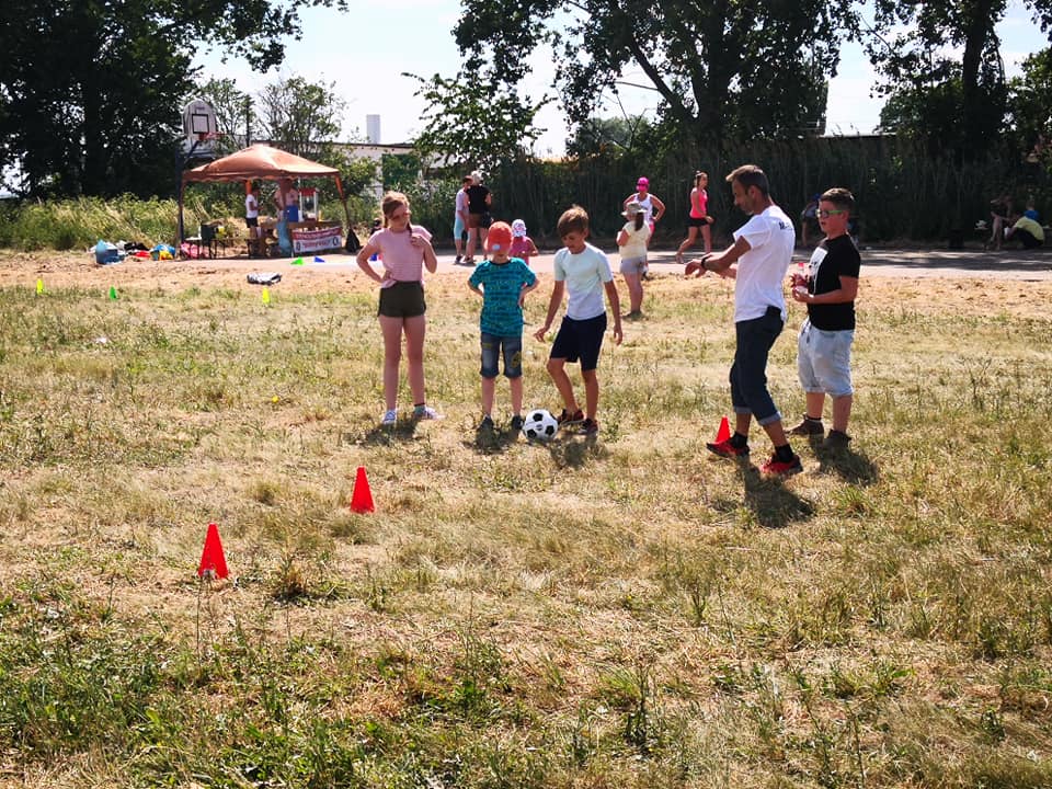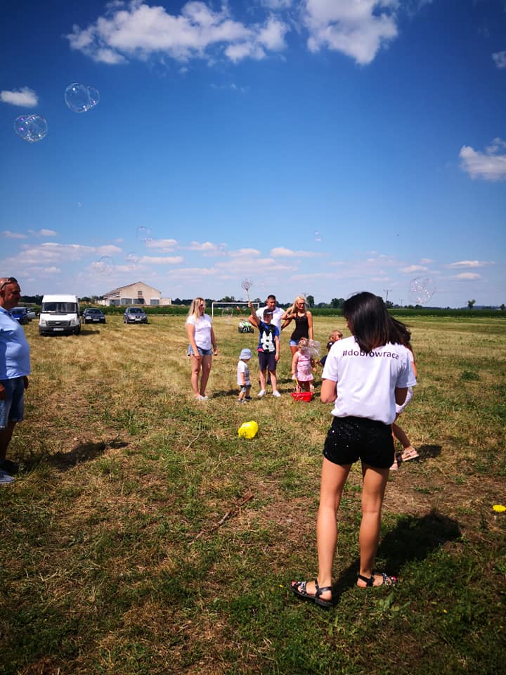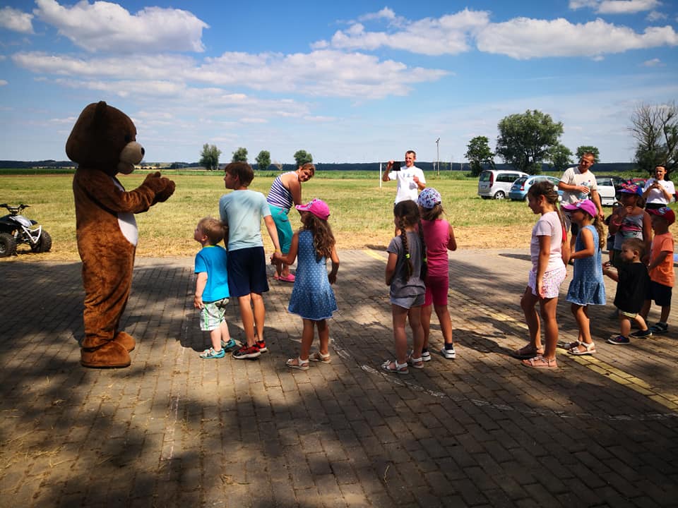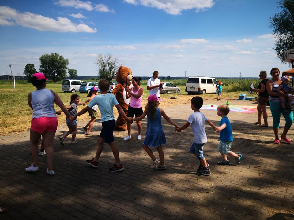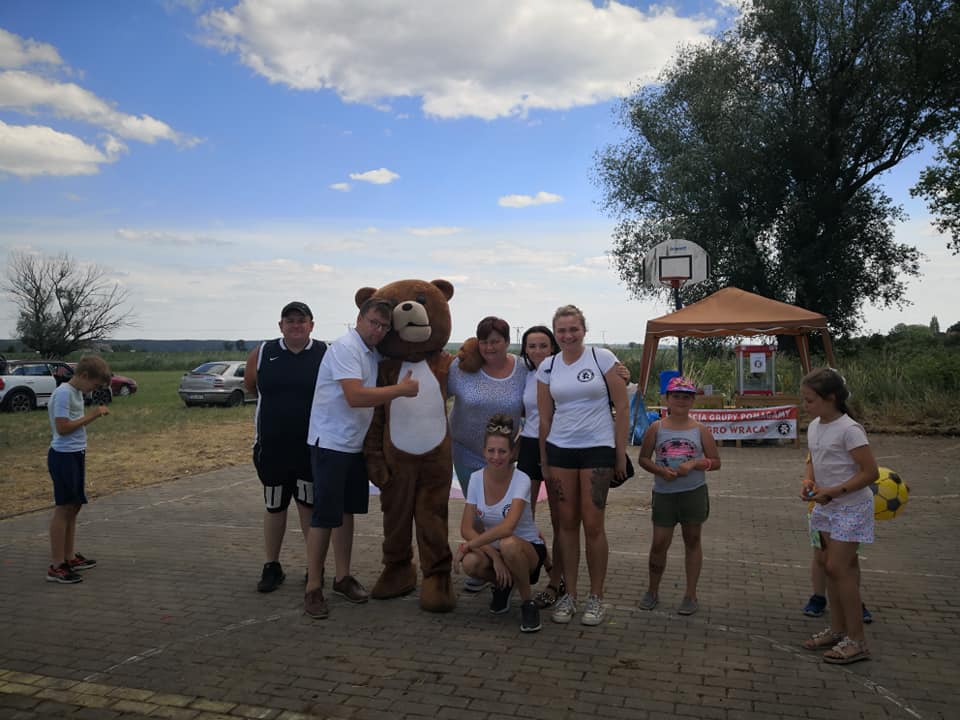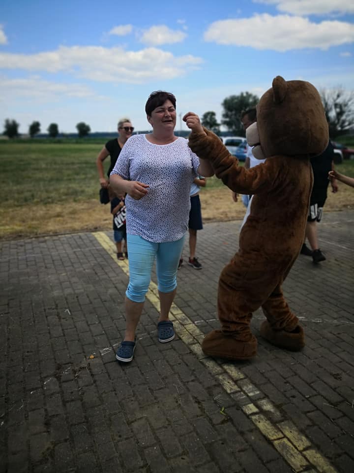 Było m.in. „nieśmiertelne” przeciąganie liny, zadania na refleks czy slalom z piłką. A po boisku przechadzał się fundacyjny miś. Goście festynu nie tylko chętnie robili sobie z nim zdjęcia, bywał porywany również do tańca! Było też coś dla podniebienia – kiełbaski z grilla, chleb ze smalcem i inne przysmaki.