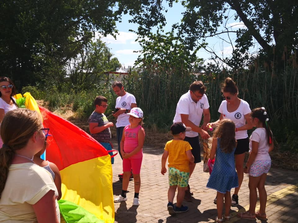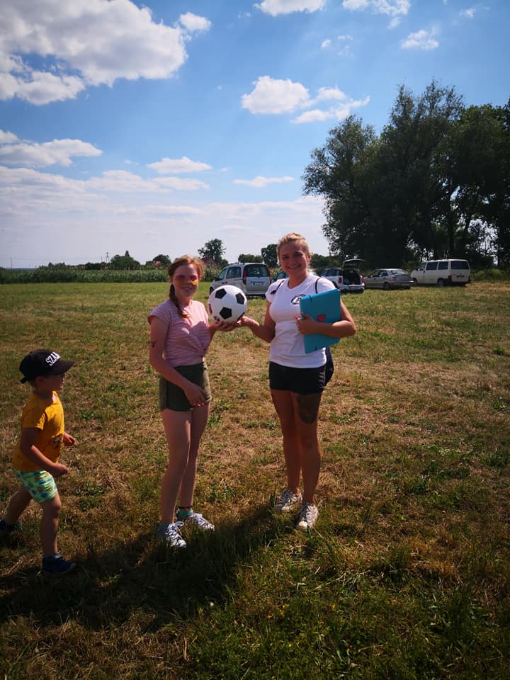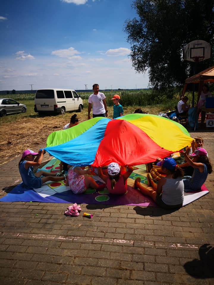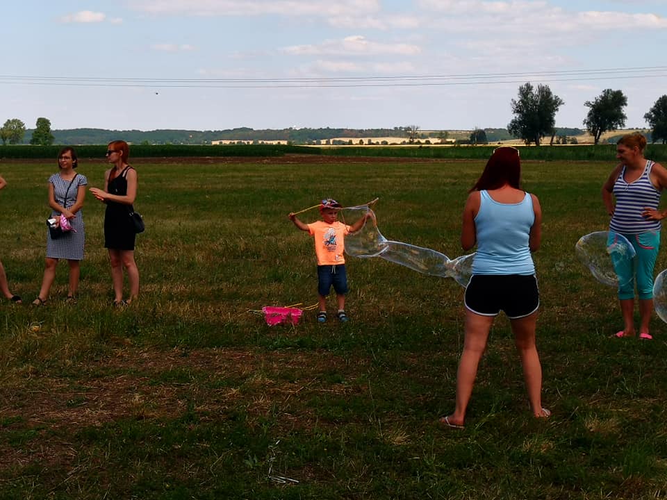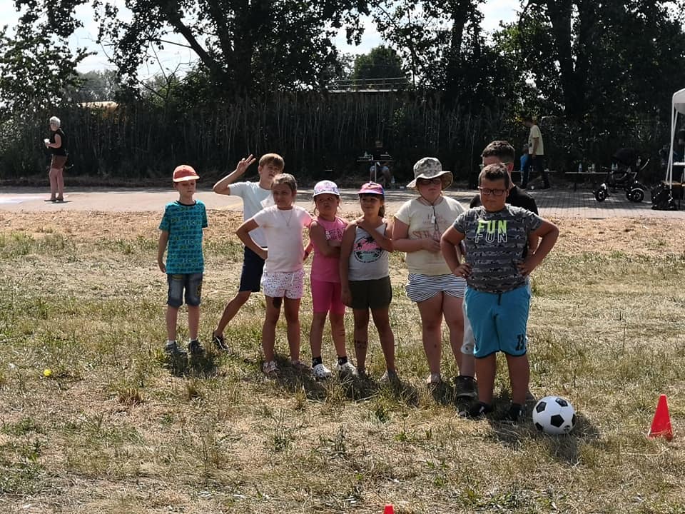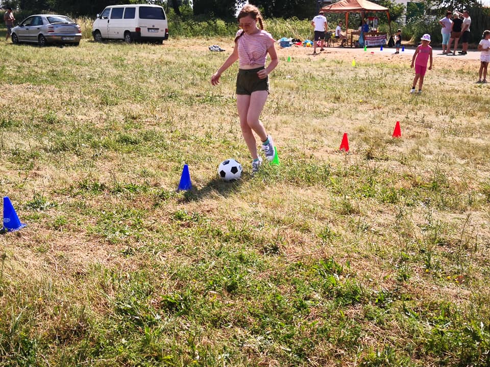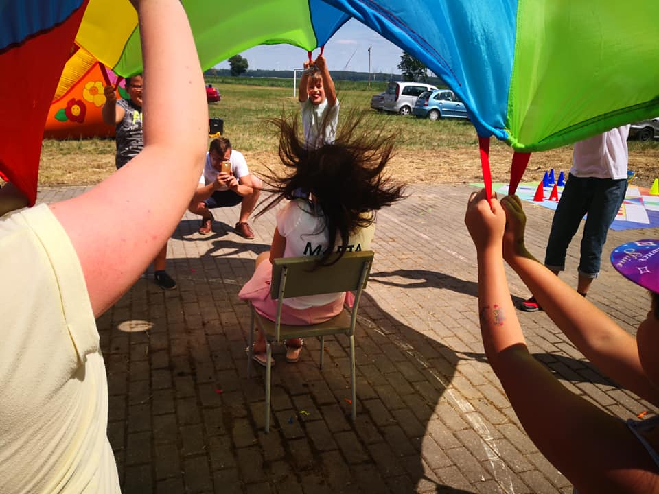 Było m.in. „nieśmiertelne” przeciąganie liny, zadania na refleks czy slalom z piłką. A po boisku przechadzał się fundacyjny miś. Goście festynu nie tylko chętnie robili sobie z nim zdjęcia, bywał porywany również do tańca! Było też coś dla podniebienia – kiełbaski z grilla, chleb ze smalcem i inne przysmaki.