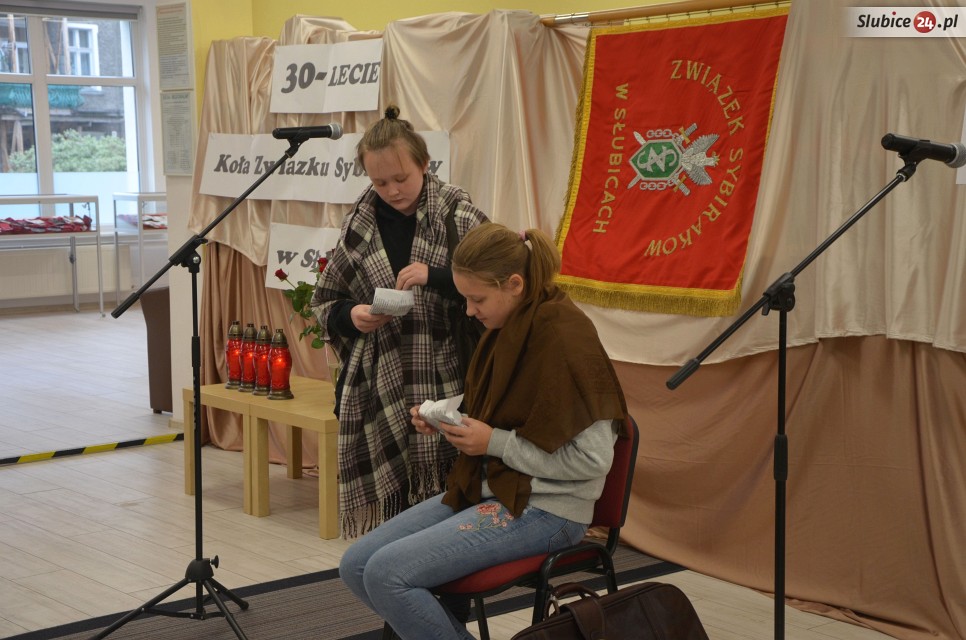 Obecny prezes koła Eugeniusz Jurczenko przedstawił historię koła słubickich Sybiraków. Ich organizacja powstała w 1989 roku. Pierwszym prezesem był Roman Golański. Po żmudnej weryfikacji dokumentów przyjęto 63 członków. Kolejnymi prezesami koła byli: Lucyna Żukowska, Ryszard Kowaluk i Czesław Jasiewicz. Obecnie koło liczy 29 członków. W skupieniu wyczytano nazwiska członków kola związku, których już nie ma. Uczczono ich pamięć minutą ciszy.