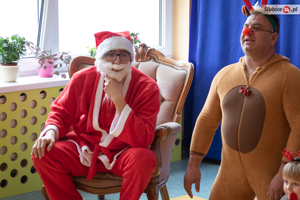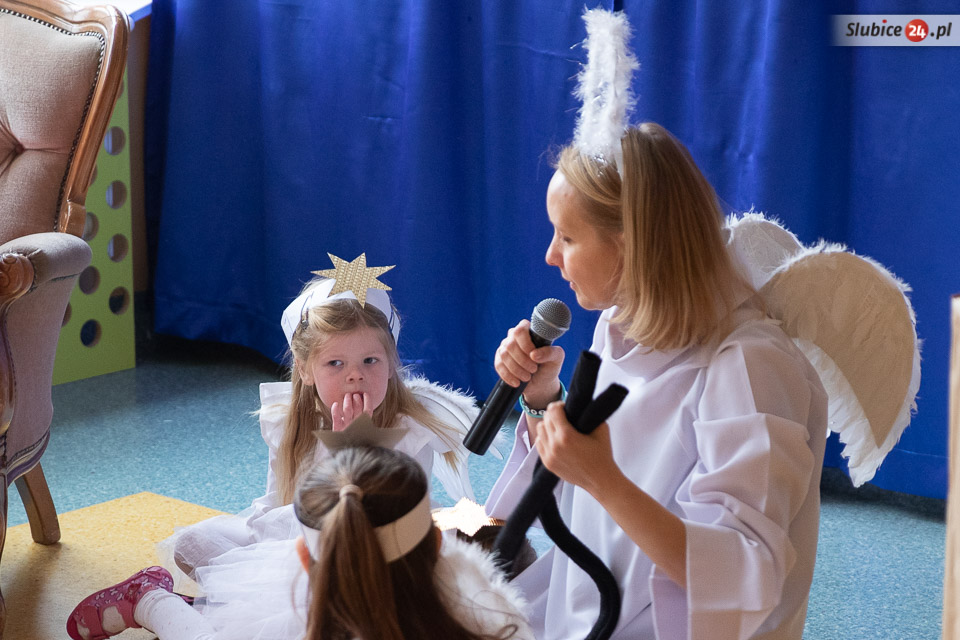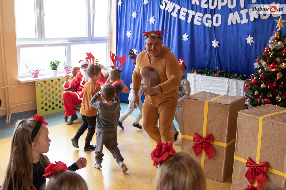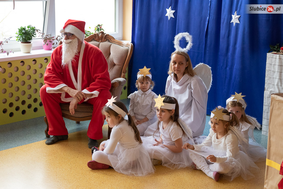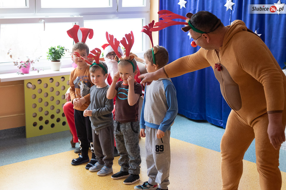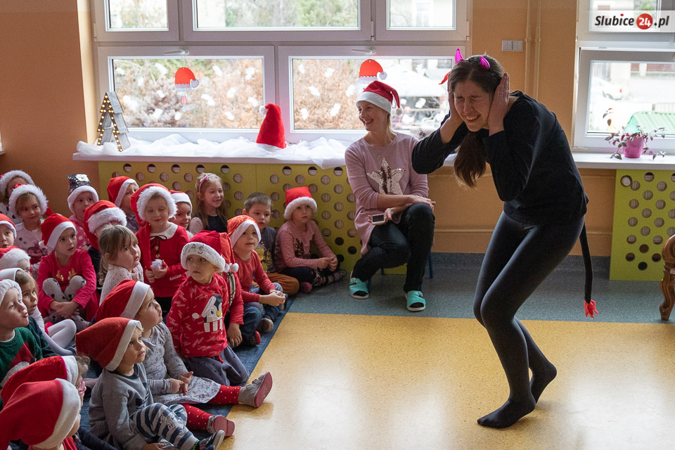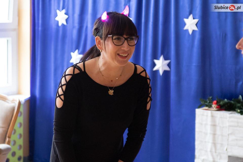 - W szukaniu pomagały Mikołajowi aniołki, którym nie udało się znaleźć worka z prezentami, ale dały radę zabrać diabełkom ogonki. A żaden szanujący się diabełek nie pokaże się nikomu bez ogonka... - opowiada dyrektor Jadwiga Grabowska. Co było dalej? Dokonano transakcji – ogonki zostały wymienione na prezenty. Zostało jeszcze tylko zawołać zwinne renifery i już można było ruszać w drogę!