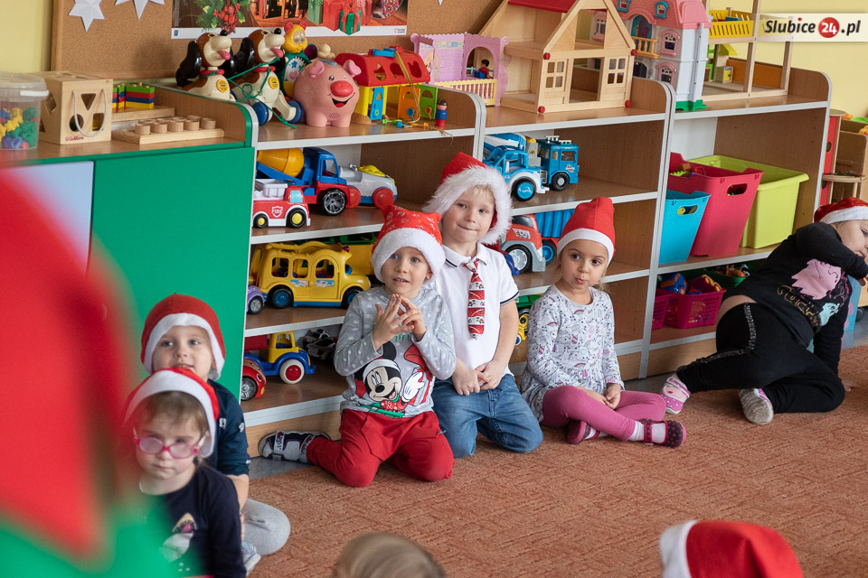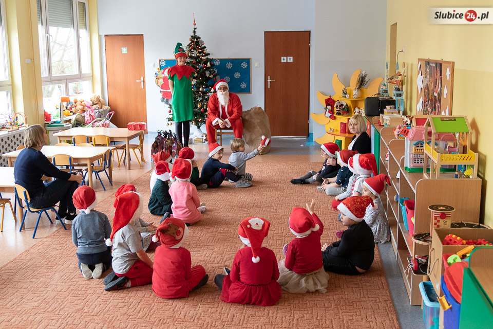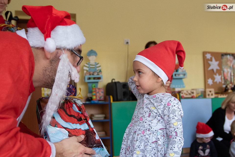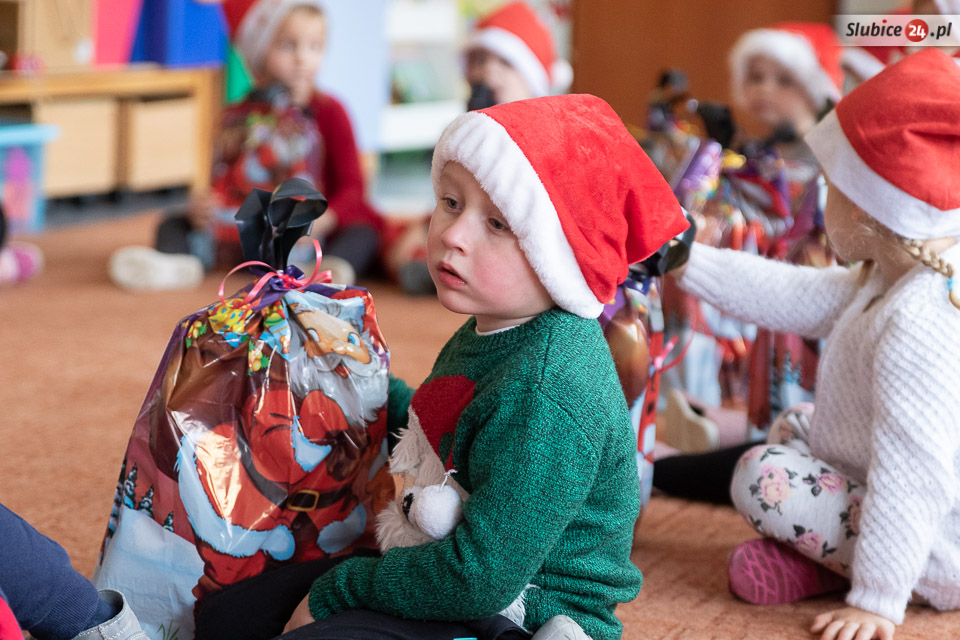 Mikołaj wraz z elfami-pomocnikami odwiedzili każdą przedszkolną grupę i rozdali prezenty. Oczywiście – wszystkie dzieci zapewniały, że są grzeczne! I każda z grup przygotowała dla Mikołaja piosenkę, żeby umilić mu ciężką pracę.