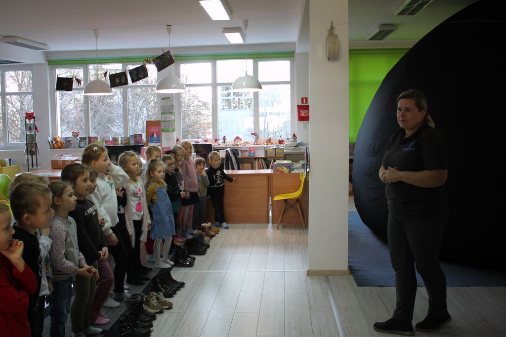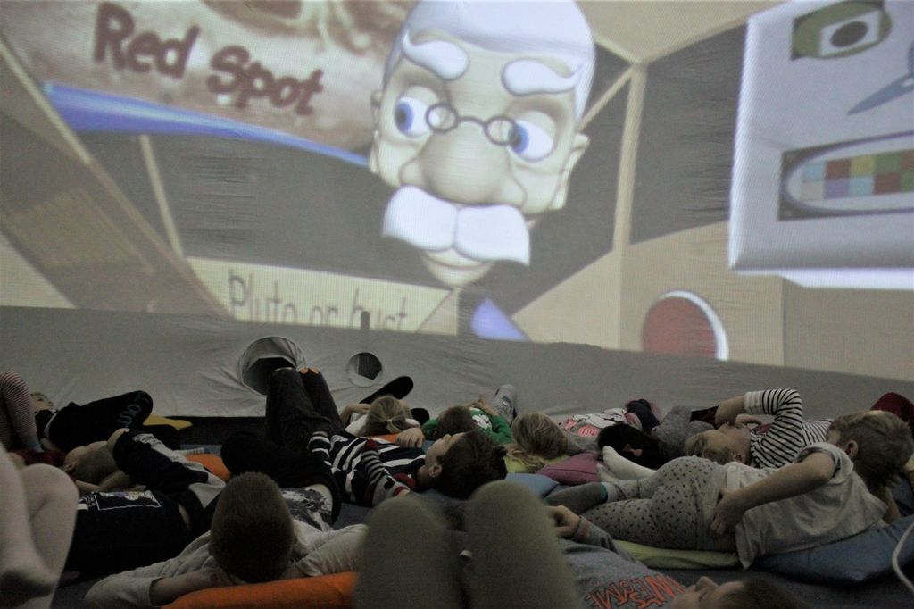 10 grudnia w oddziale dla dzieci słubickiej biblioteki odbyły się specjalne seanse – takie, które najlepiej oglądać na leżąco. Dlaczego? Żeby lepiej widzieć niebo! To właśnie w bibliotece na jeden dzień rozgościło się mobilne planetarium. W jego kopule wyświetlane były filmy o kosmosie, planetach, gwiazdach, stacjach kosmicznych...