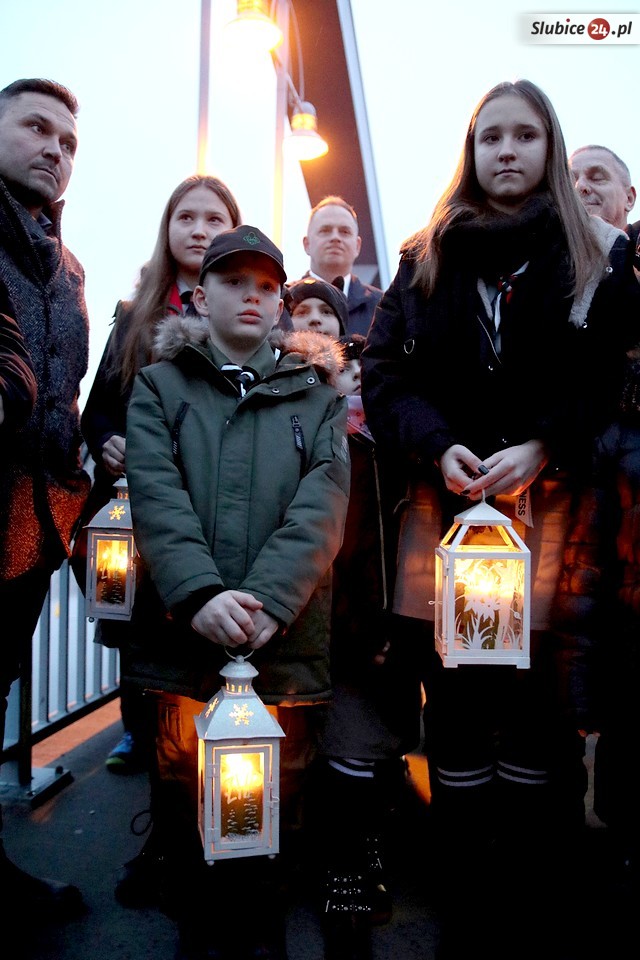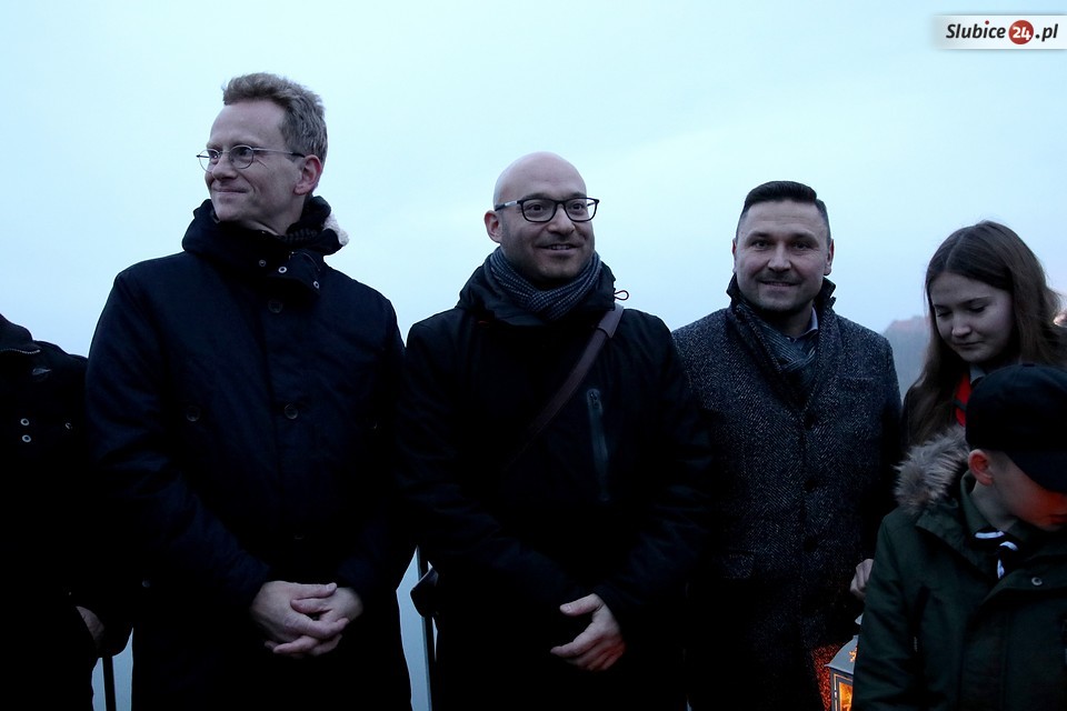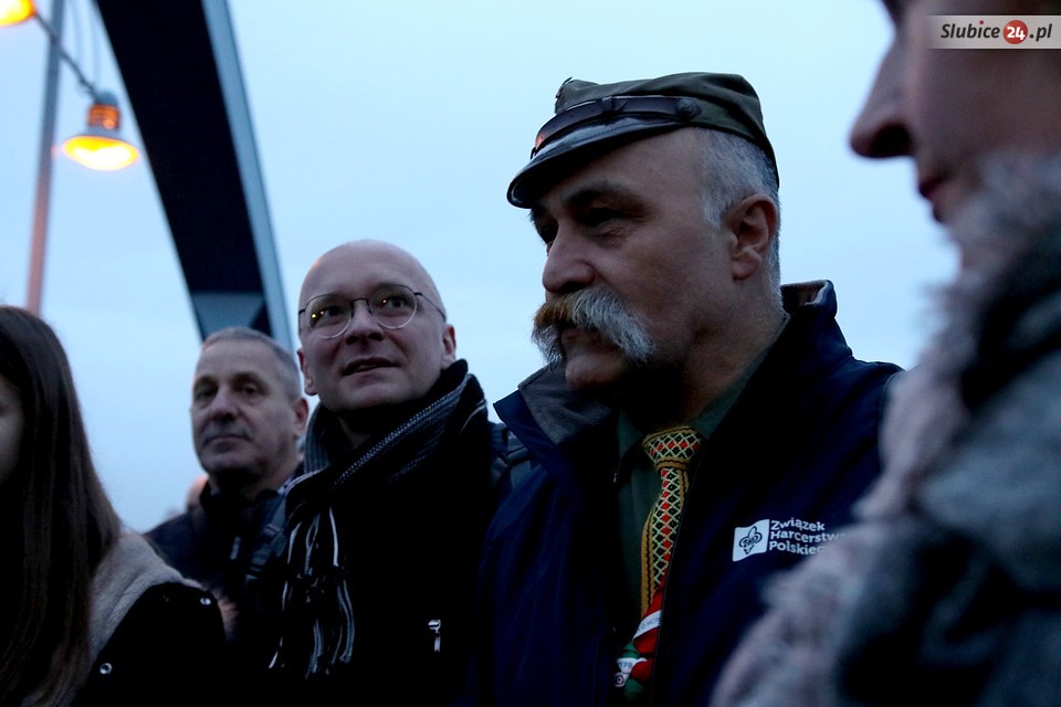 Ale na naszym mieście wędrówka BŚP się nie skończyła. 22 grudnia harcerze w towarzystwie burmistrza Słubic Mariusza Olejniczaka udali się na most graniczny, gdzie czekał już na nich nadburmistrz Frankfurtu nad Odrą Rene Wilke.