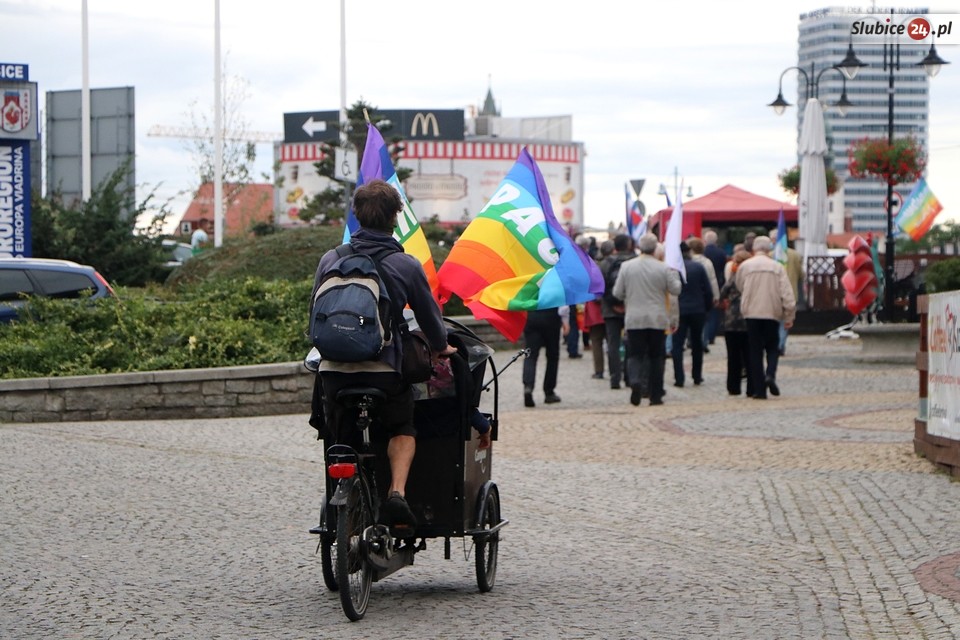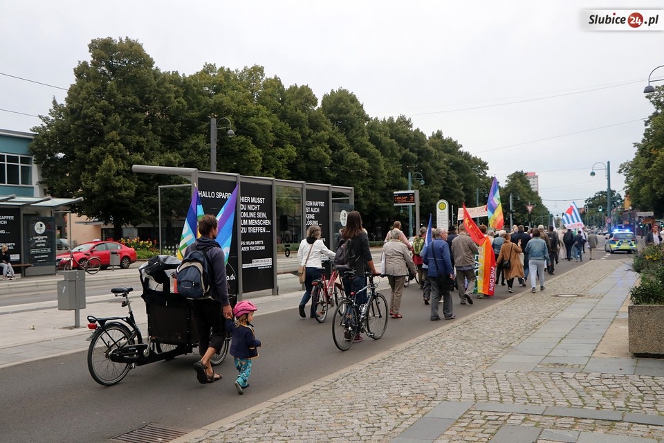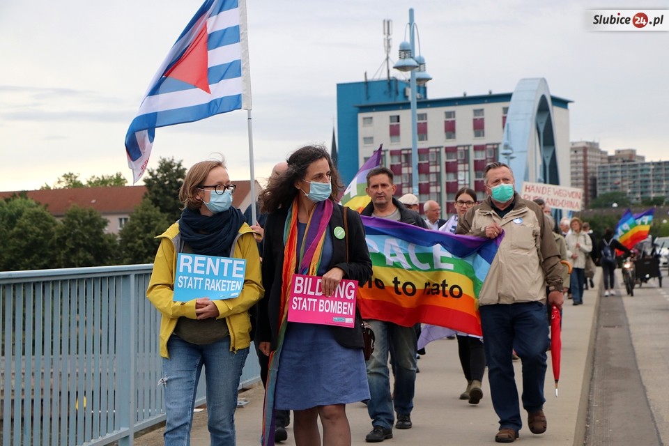 W trakcie marszu została odczytana odezwa, aby włodarze Słubic i Frankfurtu przyłączyli się do inicjatywy „burmistrzowie dla pokoju”. – Ze wszystkich sił pracujmy razem na rzecz pokoju, sprawiedliwości społecznej i klimatycznej – zaapelował T. Aniśko.