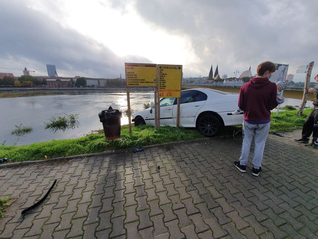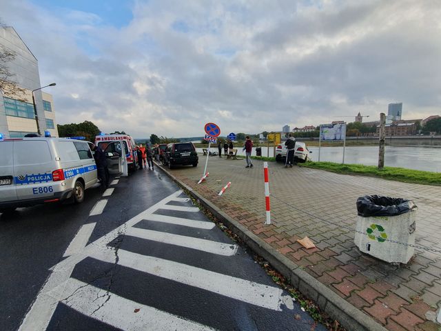 O zdarzeniu poinformował nas o godz. 16:30 jeden z czytelników, Maciej z Magic Taxi. Jak wynika z jego relacji, skręcając z mostu w stronę ul. 1 Maja białe BMW wpadło w poślizg. Zjechało z drogi na chodnik i zatrzymało się dopiero na skarpie wału przeciwpowodziowego. Niestety, w tym samym czasie chodnikiem szła kobieta. Doszło do potrącenia.