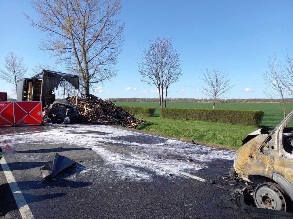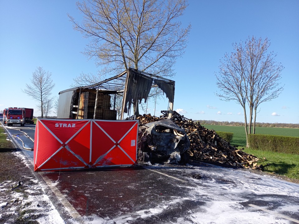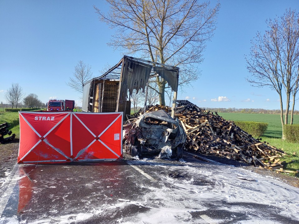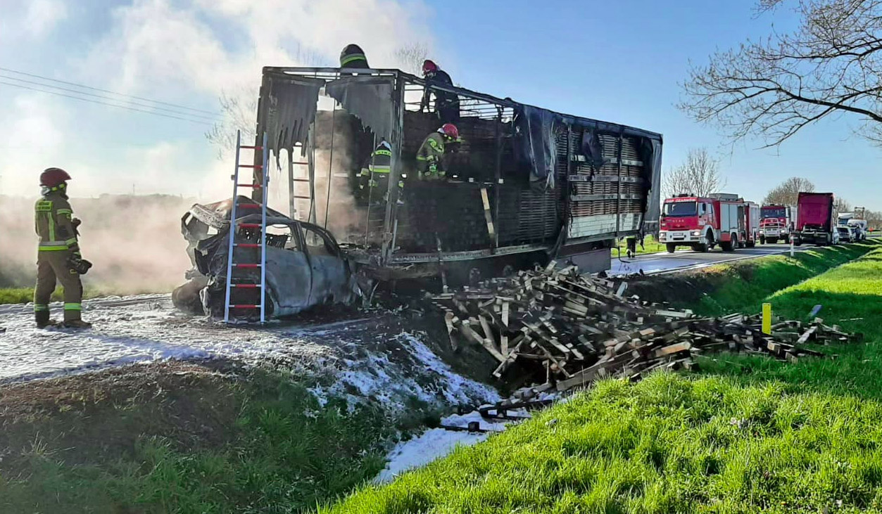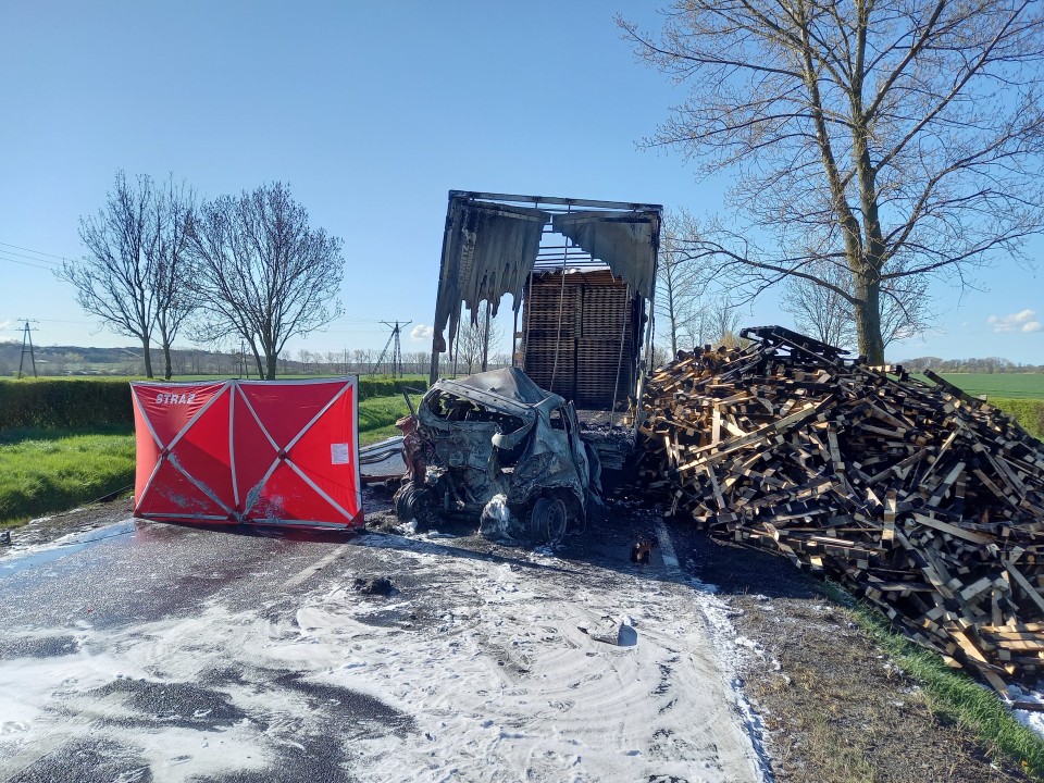 Niestety, następstwem zderzenia był pożar. Ogniem zajęły się naczepa ciężarówki, osobówka i dostawczak. Na miejscu śmierć poniósł kierowca osobowego Hyundaia (początkowo policja podała, że był to Mercedes). - Auto dosłownie wbiło się w naczepę ciężarówki, było doszczętnie zniszczone, nie było szans na uratowanie kierowcy – opowiada rzeczniczka.